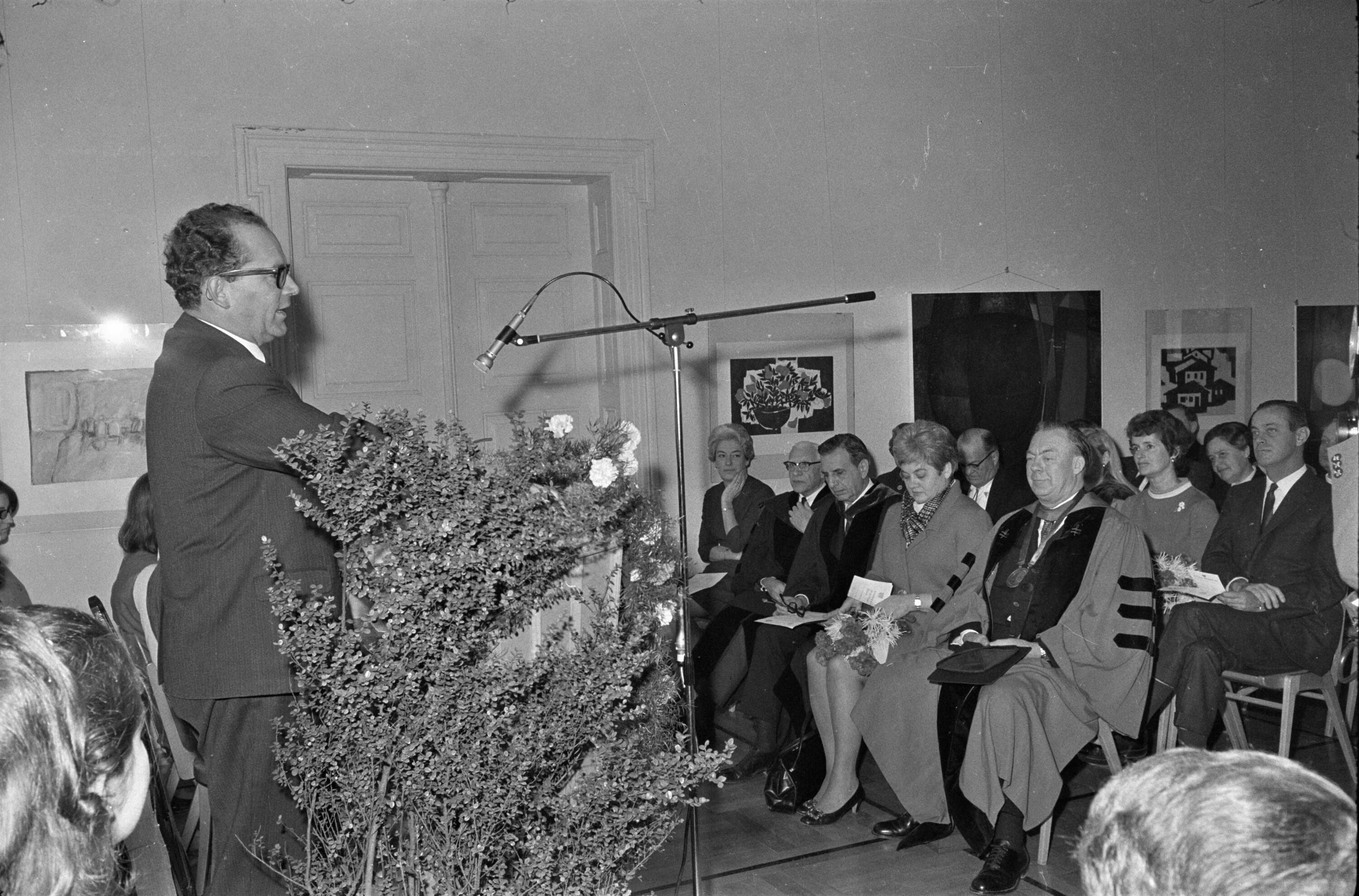 • o:300914: v.l.n.r.: vorderste Reihe: unbekannt, Dekan A. Stern, G. Pinette, Frau Davidson, Präsident Davidson
