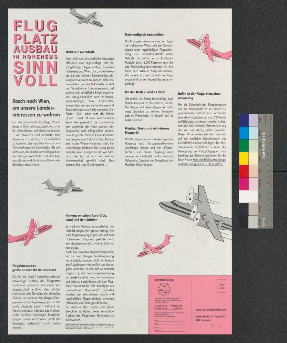 Werbeplakat für den Ausbau des Hohenemser Flugplatzes