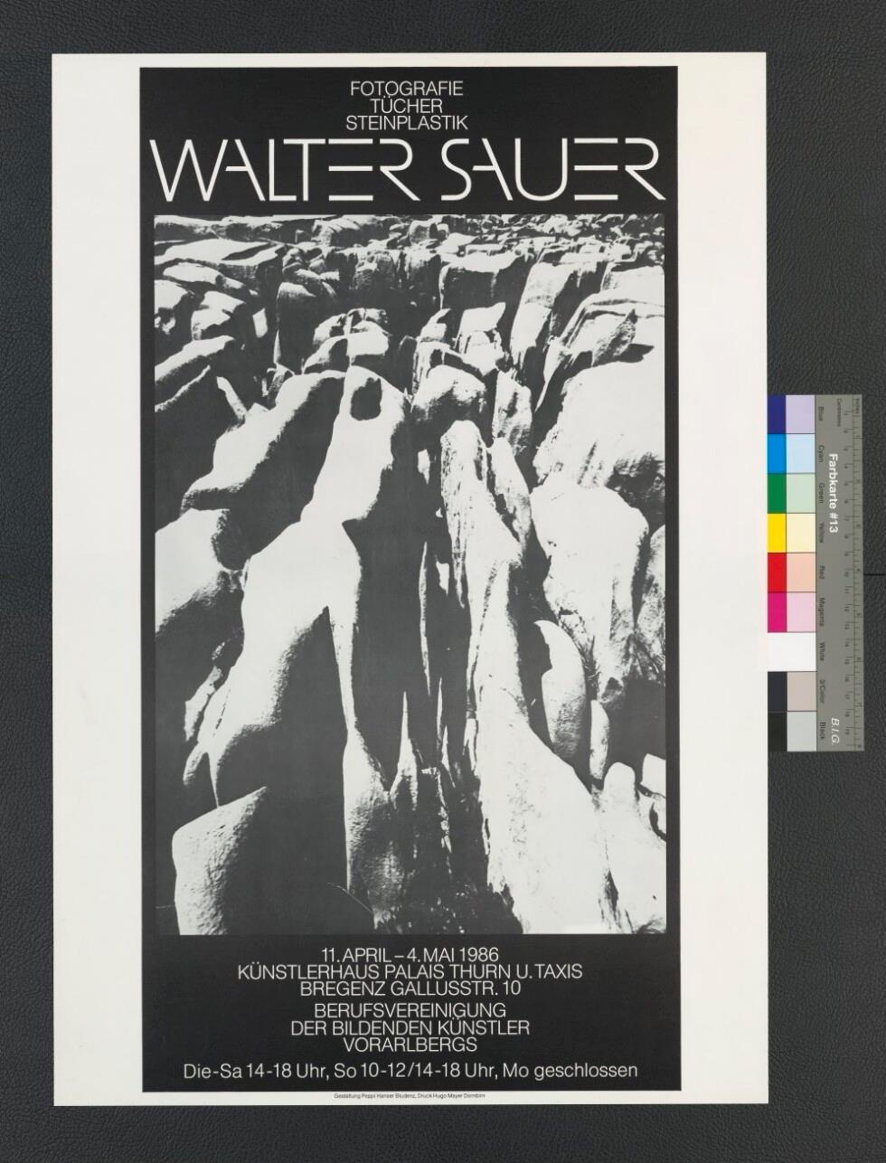 • Originaltext: Walter Sauer; Fotografie Tücher Steinplastik; 11. April - 4. Mai 1986; Künstlerhaus Palais Thurn und Taxis Bregenz