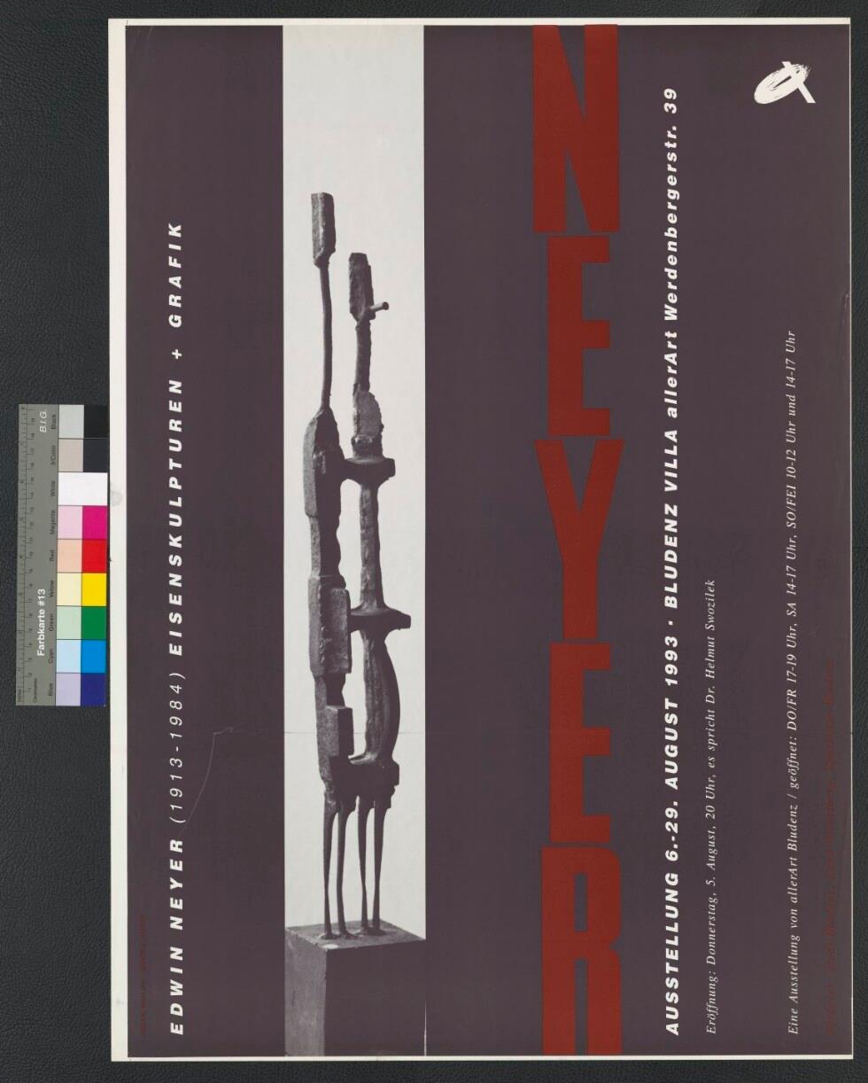 • Originaltext: NEYER EISENSKULPTUREN; Edwin Neyer (1913-1984); EISENSKULPTUREN + GRAFIK; Druck: wenin OHG; GRAFIK J. HANSER; BLUDENZ VILLA allerART Werdenbergerstr. 39; Es spricht: Helmut Swozilek