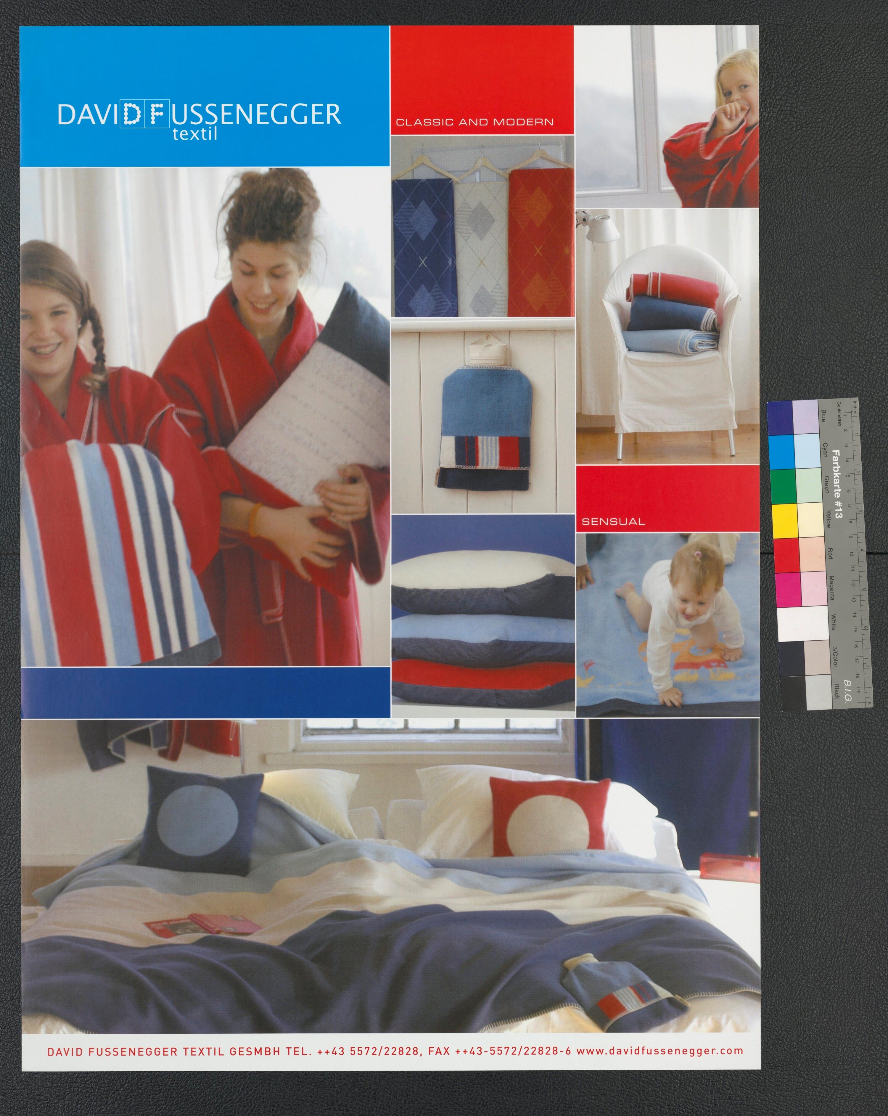 • Originaltext: In der Zeit von 1997-2016 gestaltete ich die Kollektions-Kataloge der Firma David Fussenegger als selbstständige, freie Grafikerin; DaviDFussenegger textil Classic and Modern Senusal David Fussenegger Textil GesmbH Tel. (...) Fax (...) www.davidfussenegger.com