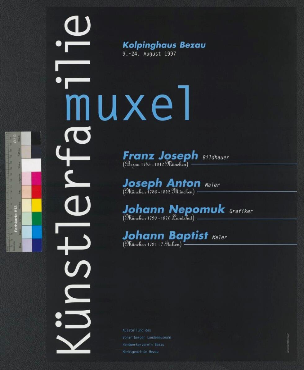 • Originaltext: Künstlerfamilie Muxel, Ausstellung des Vorarlberger Landesmuseums, Handwerkerverein Bezau, Marktgemeinde Bezau; 22.November 1997 bis 6. Jänner 1998