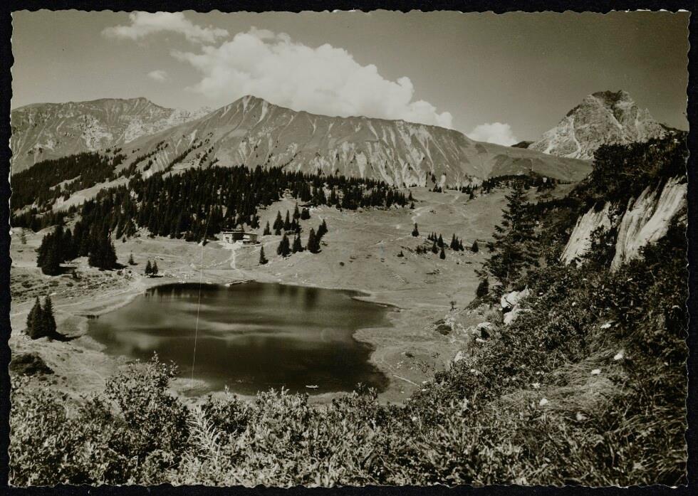 [Schröcken] : [Körbersee, 1700 m Von links nach rechts: gegen Braunarlspitze, 2651 m Hochberg, 2304 m Rothorn, 2243 m ...]
