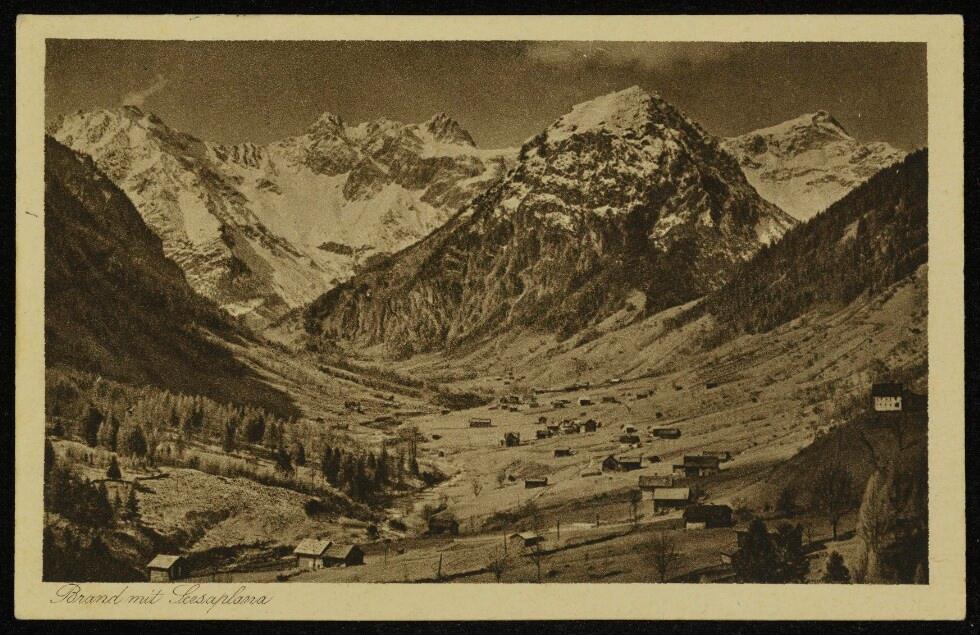 [Brand] : [Brand (1087 m) gegen Schesaplana (2965 m) Zirmenkopf (2906 m) und Seekopf (2698 m), Vorarlberg ...]