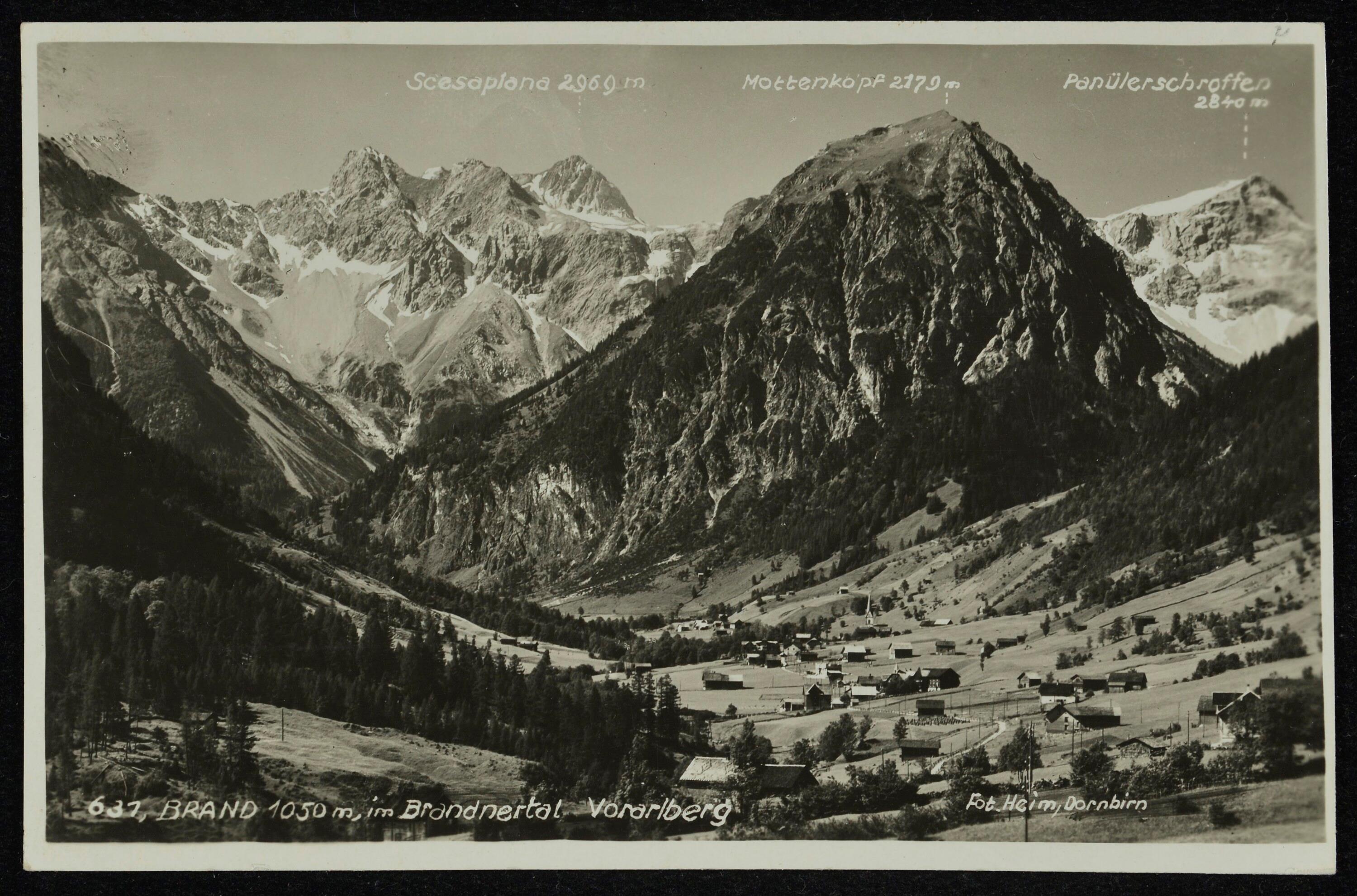[Brand] : [Brand (1087 m) gegen Schesaplana (2965 m) Zirmenkopf (2906 m) und Seekopf (2698 m), Vorarlberg ...]