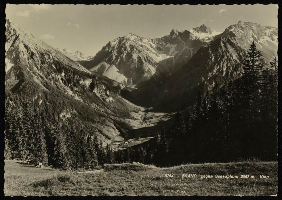 [Brand] : [Brand (1087 m) gegen Schesaplana (2965 m) Zirmenkopf (2906 m) und Seekopf (2698 m), Vorarlberg ...]