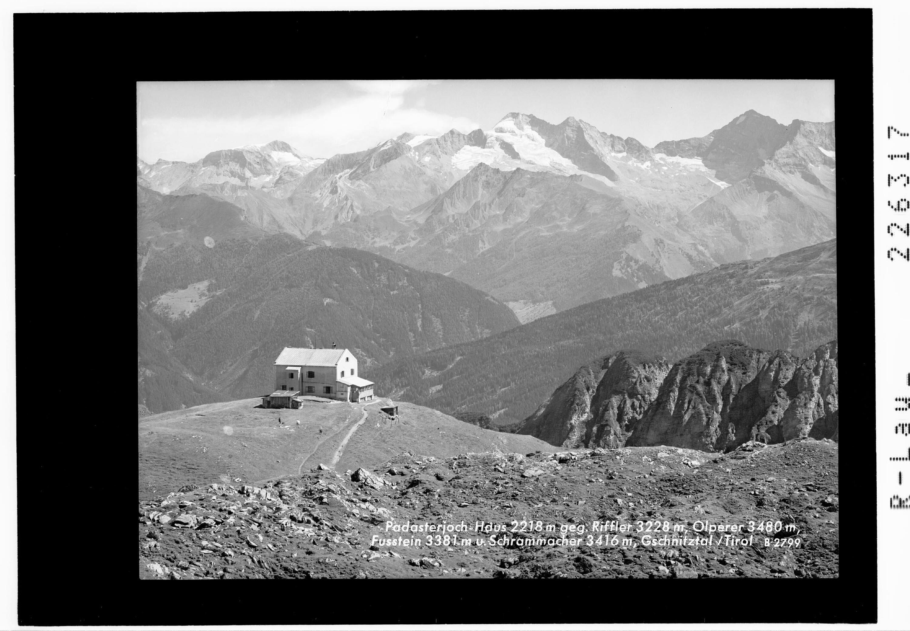 Padasterjoch Haus 2218 m gegen Riffler 3228 m - Olperer 3480 m - Fußstein 3381 m und Schrammacher 3416 m / Gschnitztal / Tirol