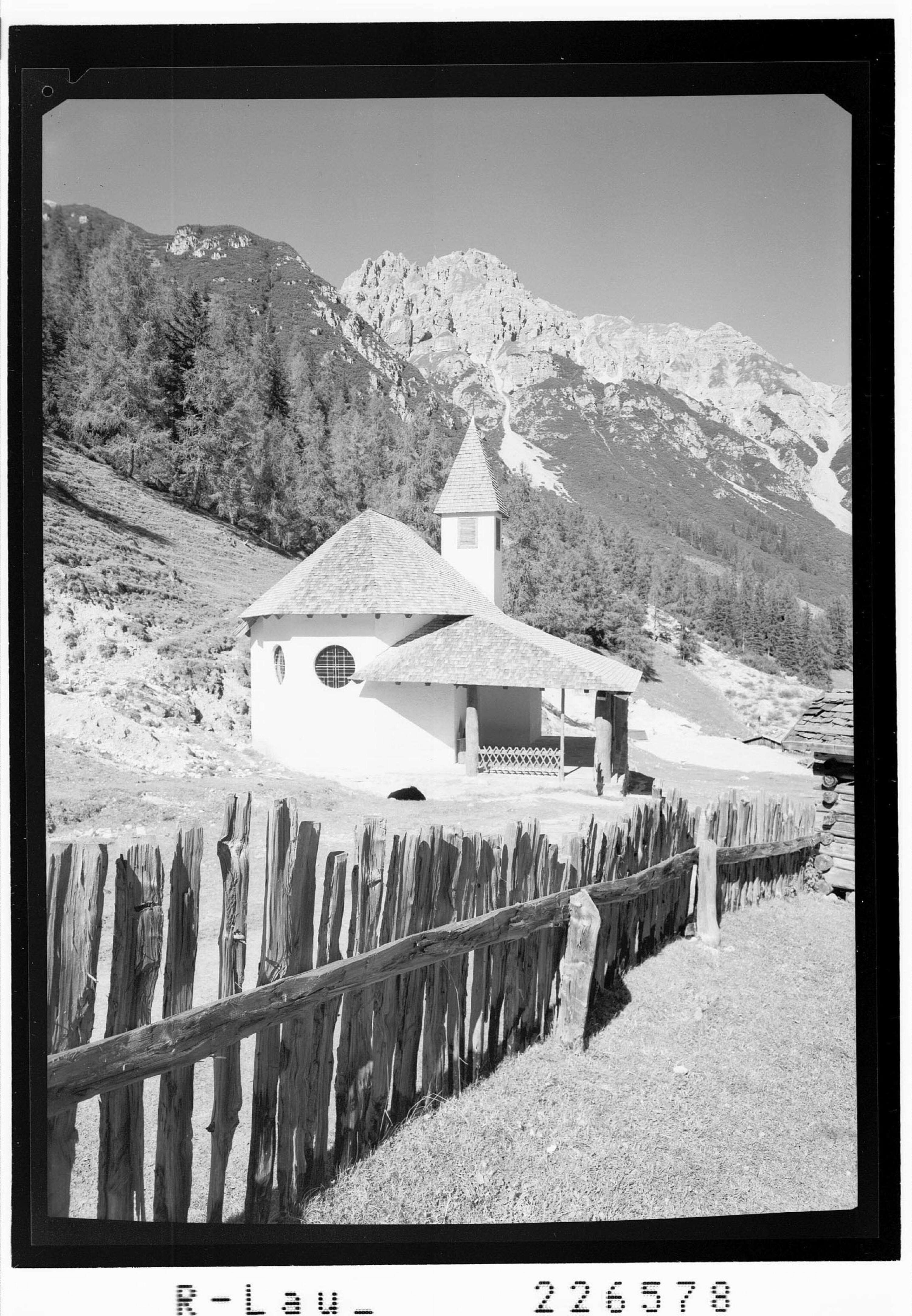 [Schlicker Alm ob Telfes im Stubaital / Kapelle gegen Marchreisenspitze / Tirol]