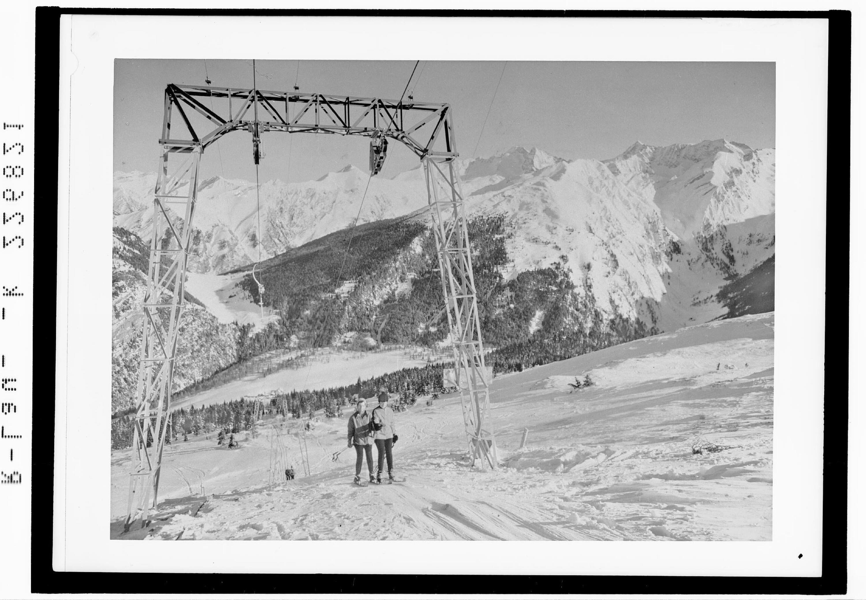 [Schlepplift am Sattelberg ob Gries am Brenner mit Blick in die Tuxer Alpen und zum Olpererkamm / Tirol]