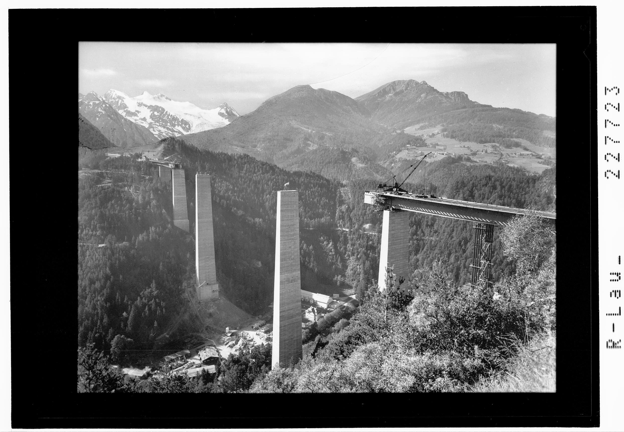 [Europabrücke bei Innsbruck (im Bau) gegen Stubaier Alpen mit Zuckerhütl und Nockspitze / Tirol]