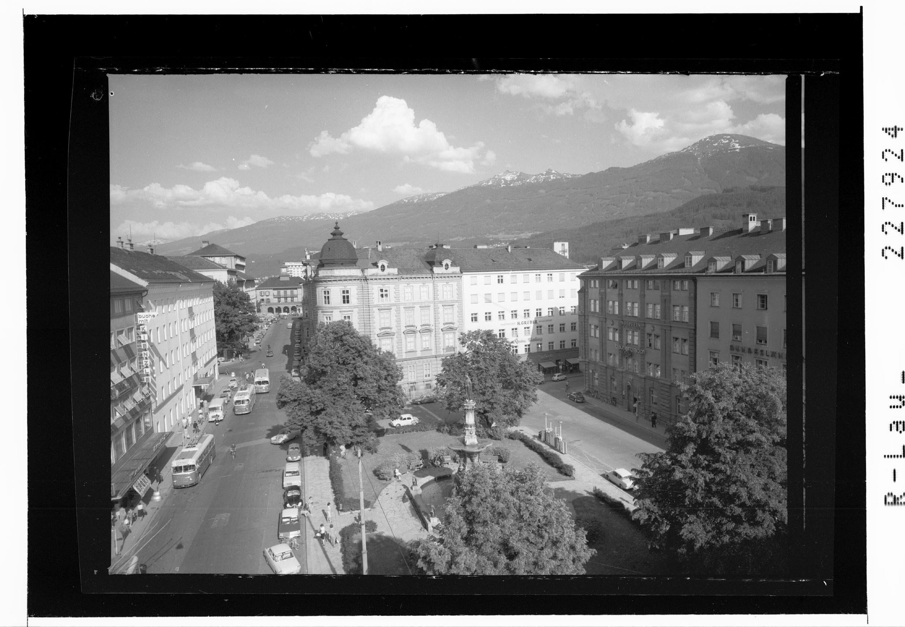 [Boznerplatz in Innsbruck gegen Glungezer und Patscherkofel / Tirol]