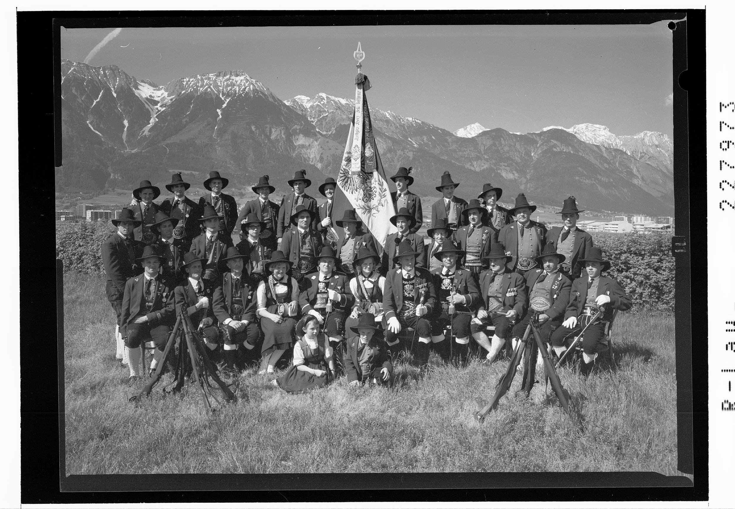 [Amras bei Innsbruck / Schützenkompanie gegen Nordkette und Bettelwurf / Tirol]