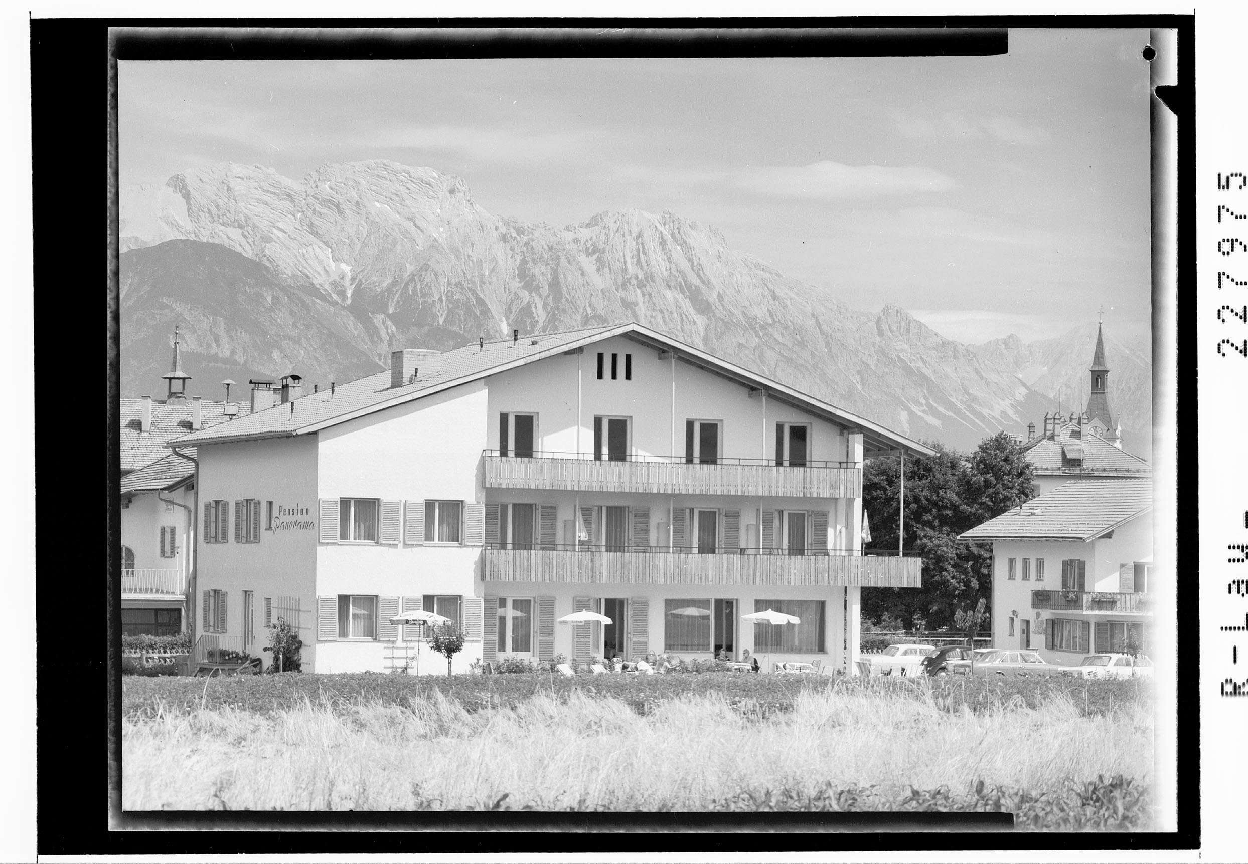 [Pension Panorama in Igls bei Innsbruck gegen Bettelwurf und Hochnisslspitze / Tirol]