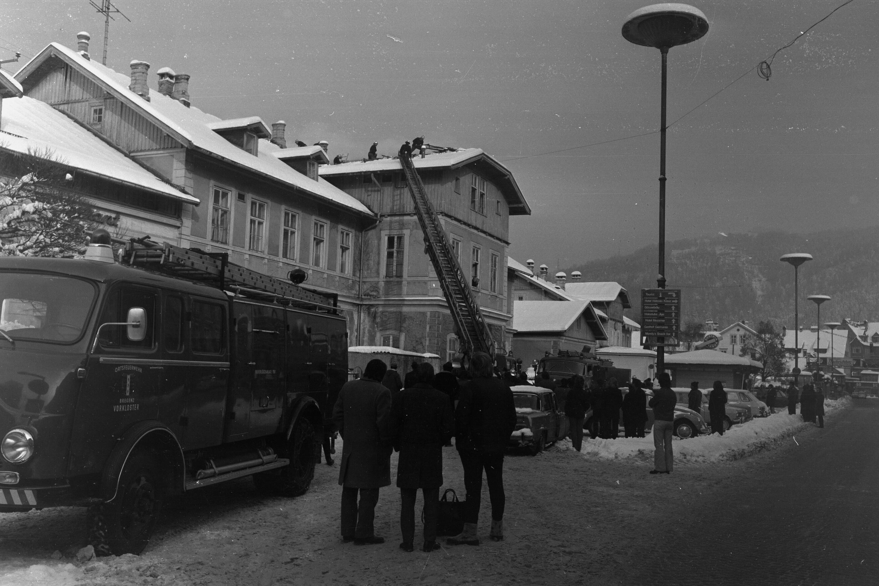 Löscharbeiten am alten Bregenzer Bahnhof