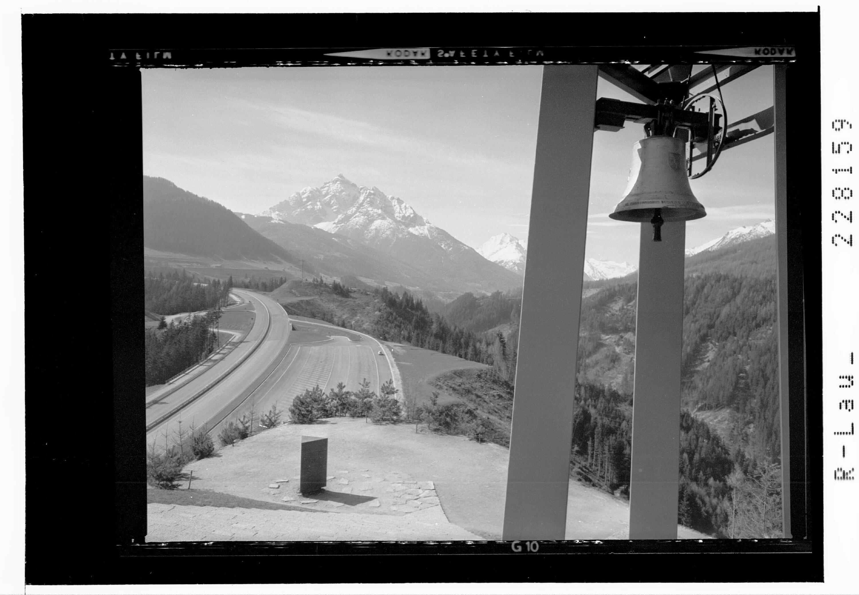 [Glockenturm der Kapelle bei der Europabrücke mit Blick zur Serles / Tirol]