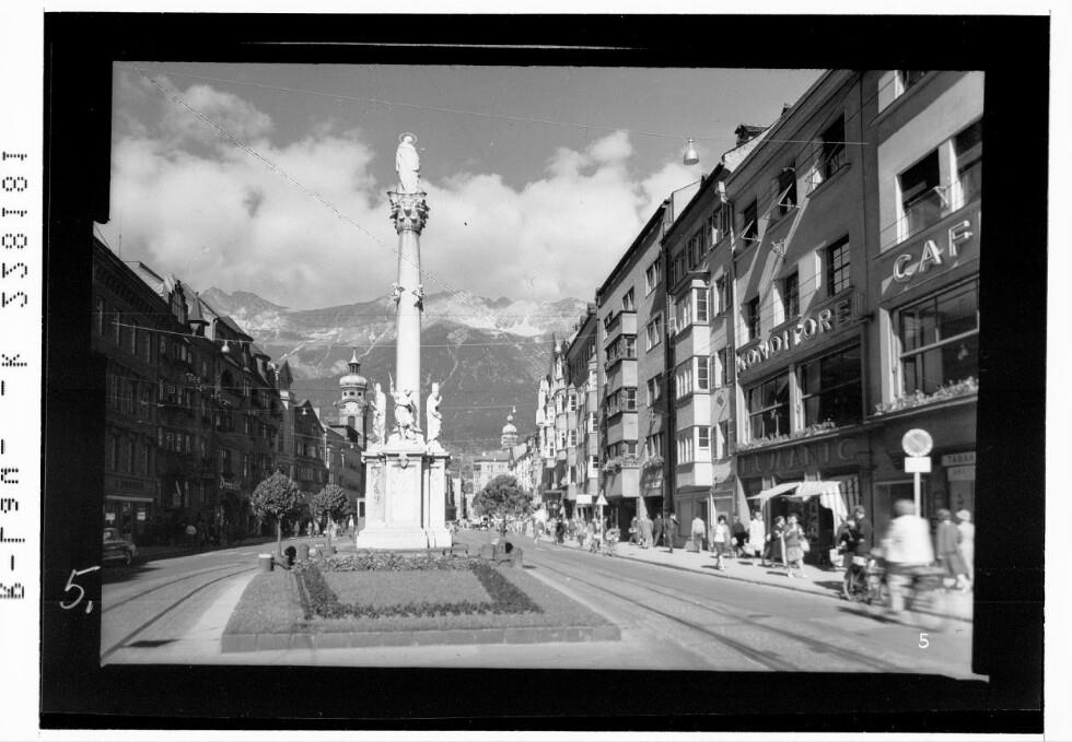 [Innsbruck / Maria Theresia Strasse mit Annasäule gegen Nordkette]