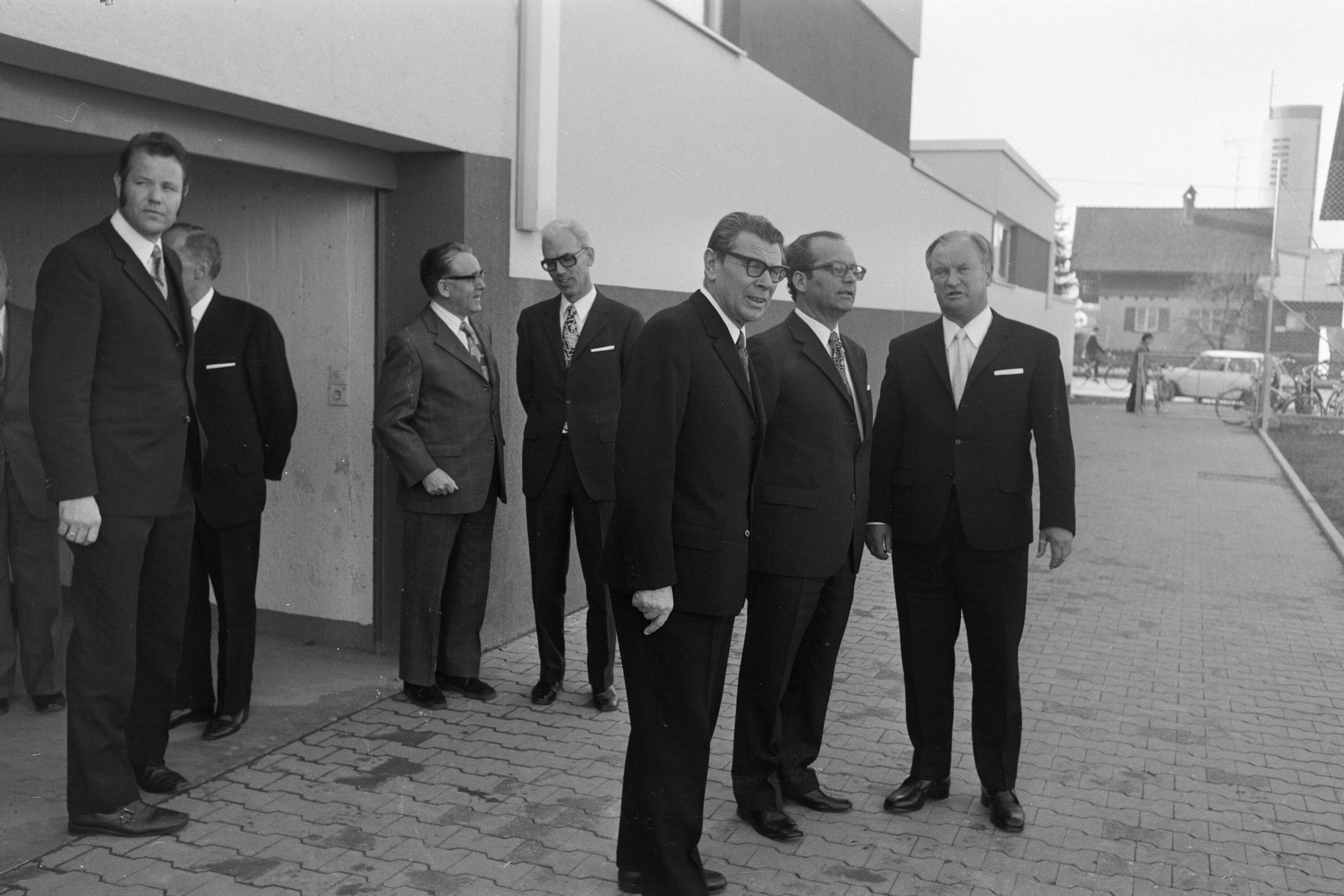 • o:329097: v.l.n.r.: unbekannt, Siegfried Gasser, Fritz Mayer; 2. Reihe v.r.n.l.: Bertram Jäger, Norbert Neururer, unbekannt, Alois Kaindl