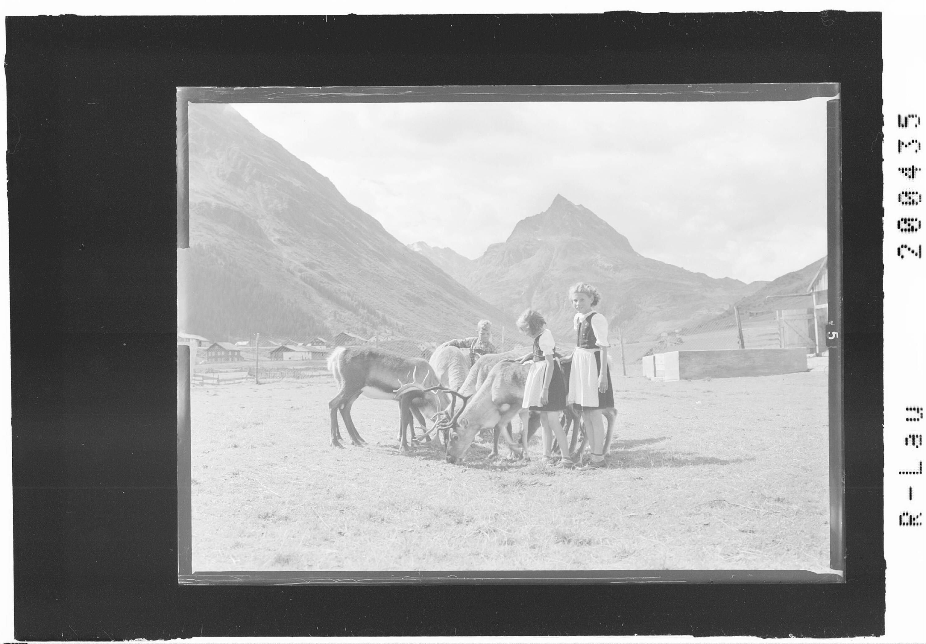 [Hirschfütterung bei Galtür im Paznaun mit Blick zur Ballunspitze]
