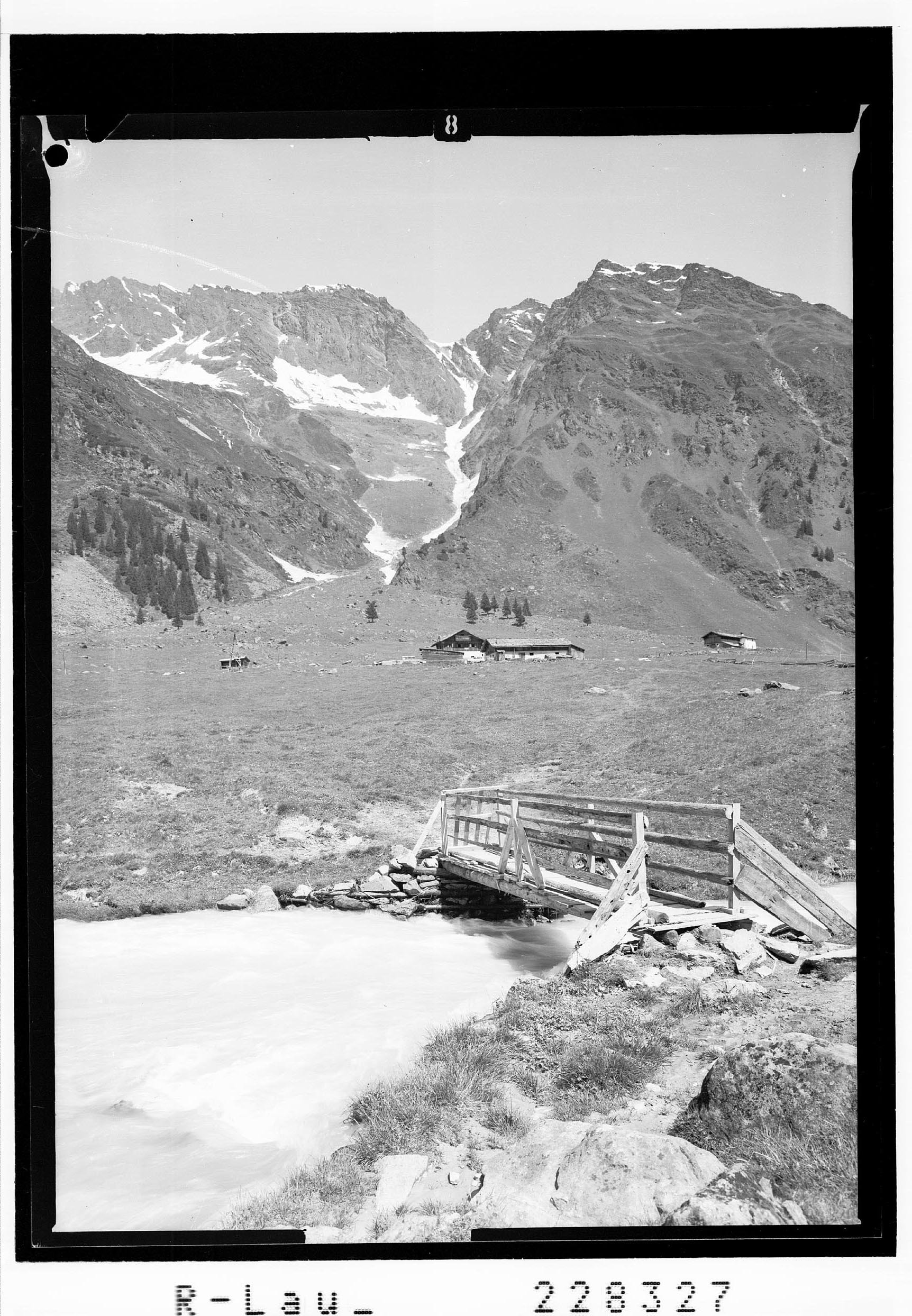 [Oberissalm mit Oberisshütte im Oberbergtal gegen Schaldersspitze und Wildkopf / Tirol]