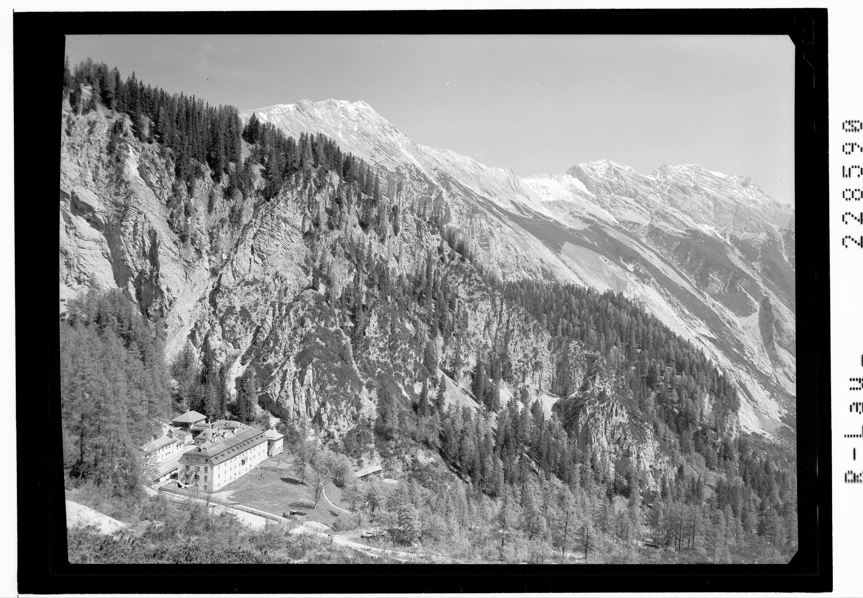 [Herrenhäuser im Halltal gegen Speckkarspitze und Bettelwurf Tirol]