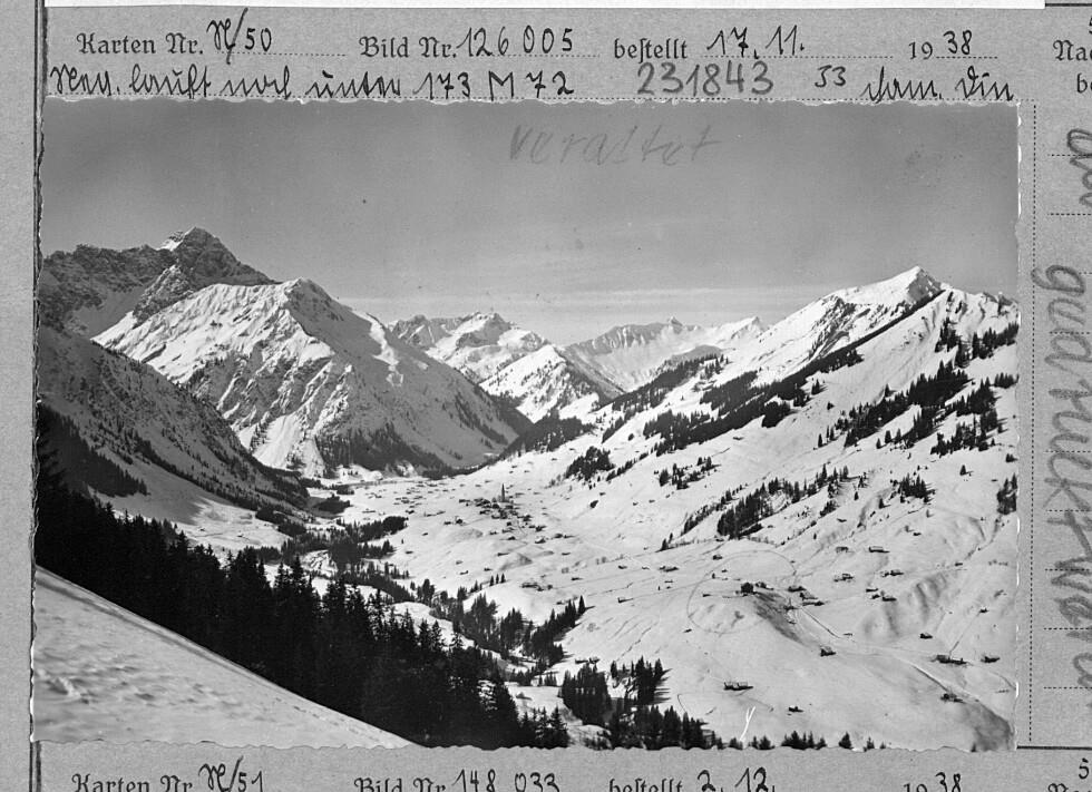 [Blick auf Mittelberg im Kleinwalsertal mit Widderstein, Heiterberg, Güntlelspitze und Walmedinger Horn]