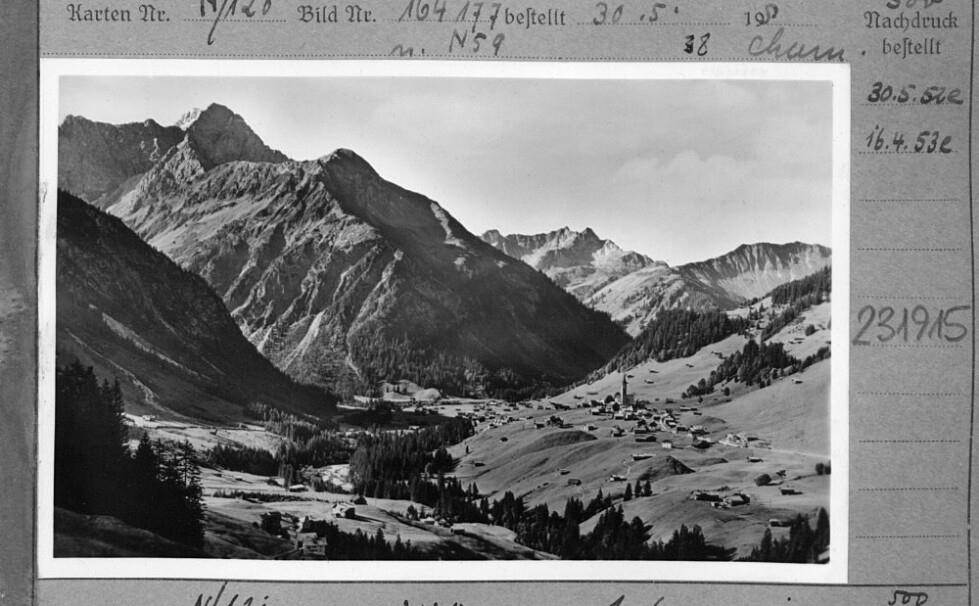 [Mittelberg im Kleinwalsertal gegen Widderstein, Heiterberg und Üntschengrat]