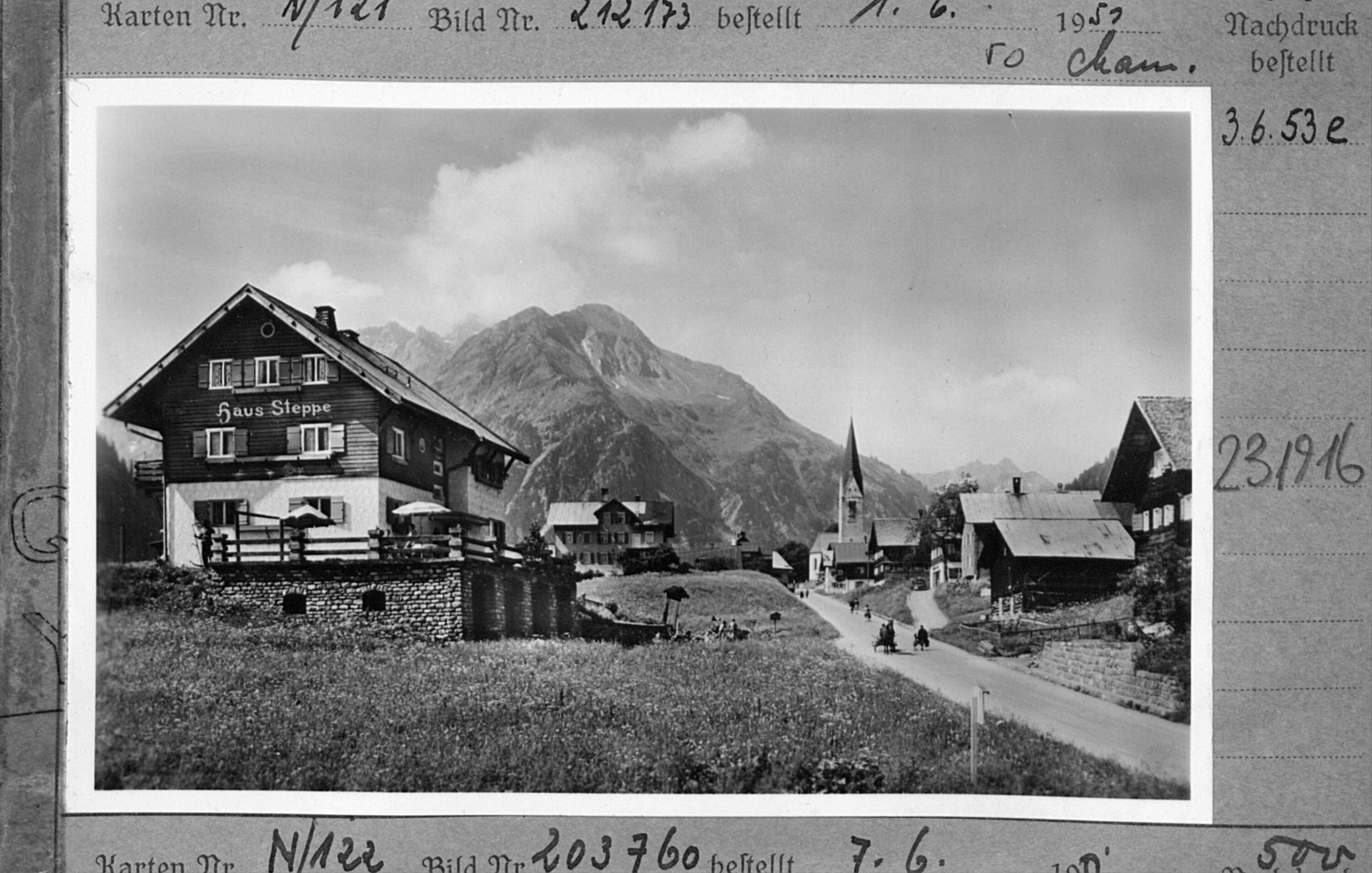 [Haus Steppe in Mittelberg im Kleinwalsertal gegen Bärenkopf und Heiterberg]
