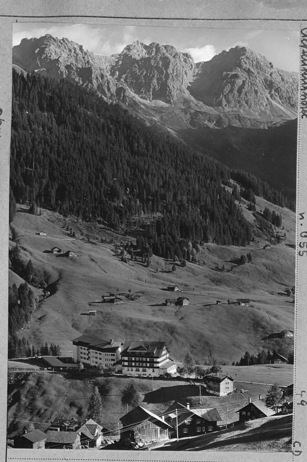 [Blick auf das Alpenkurhotel Walsertal bei Mittelberg gegen Höfle und Schafalpenköpfe / Kleinwalsertal]