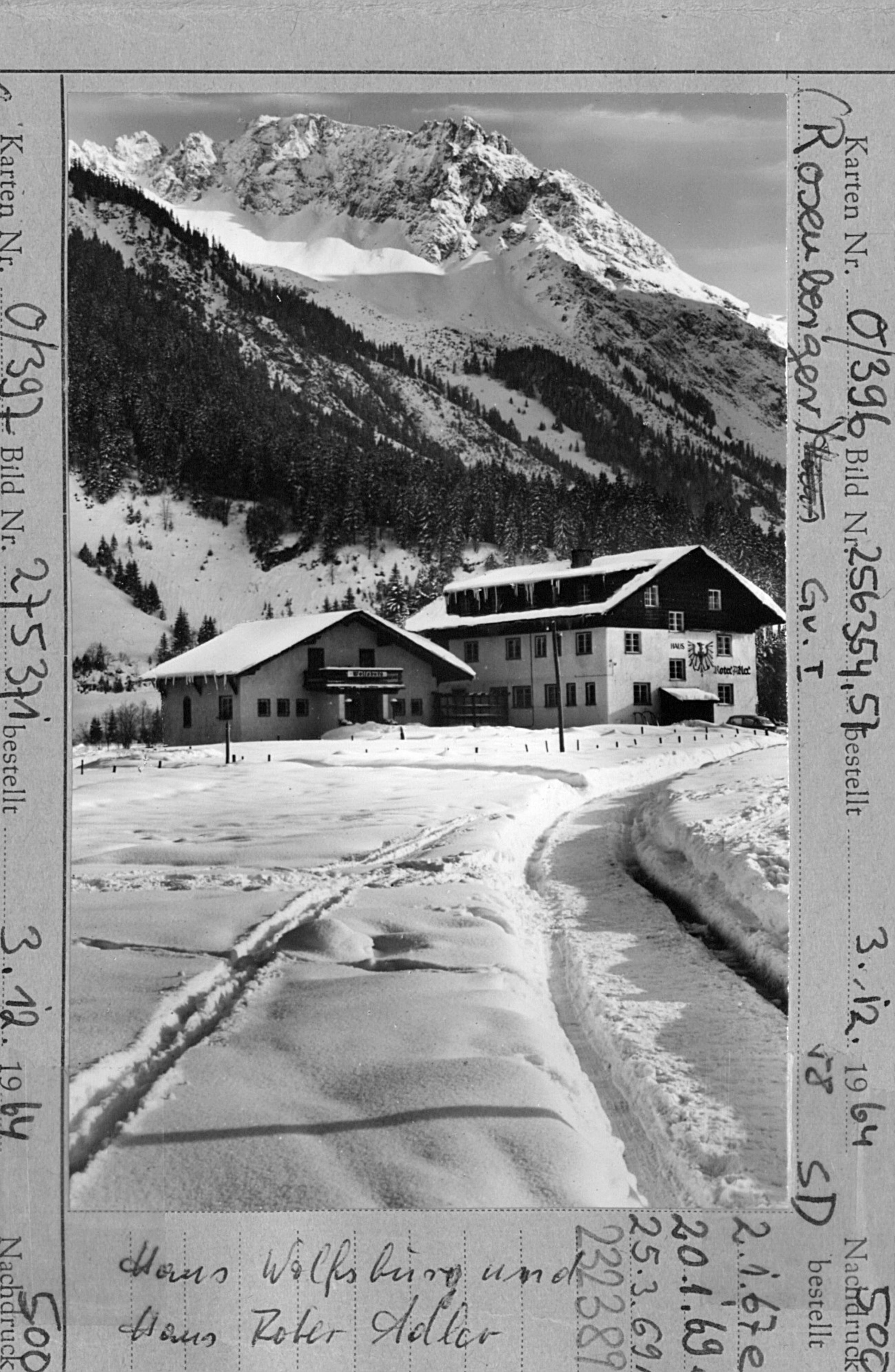 [Haus Wolfsburg und Haus Roter Adler in Mittelberg - Bödmen gegen Geisshorn / Kleinwalsertal]