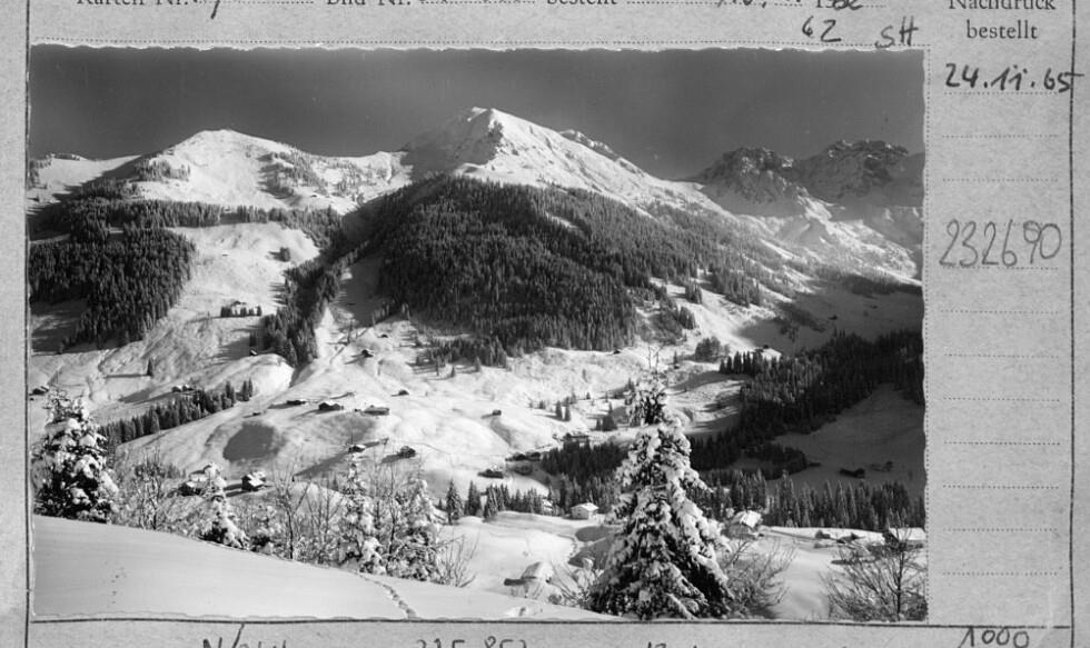 [Blick von der Zafernaalpe auf Höfle bei Mittelberg gegen Kuhgehrenspitze, Hammerspitze und Schafalpenköpfe / Kleinwalsertal]