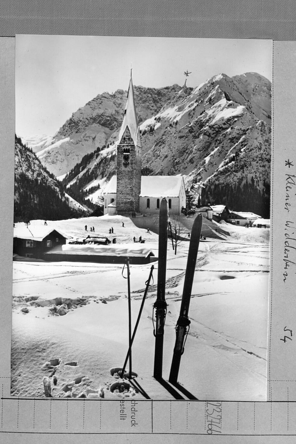 [Pfarrkirche in Mittelberg gegen Gemsteltal und Bärenkopf / Kleinwalsertal]