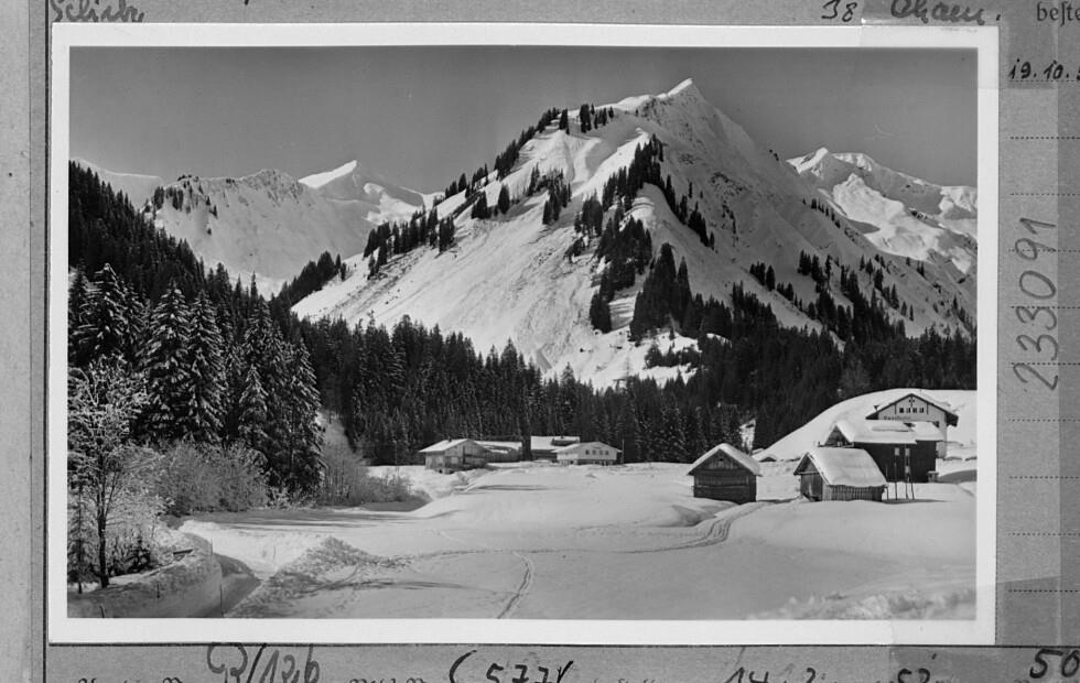 [Baad mit Alpengasthof Noris-Hütte und Sporthotel Baad gegen Güntlespitze, Unspitze und Hochstarzel / Kleinwalsertal]