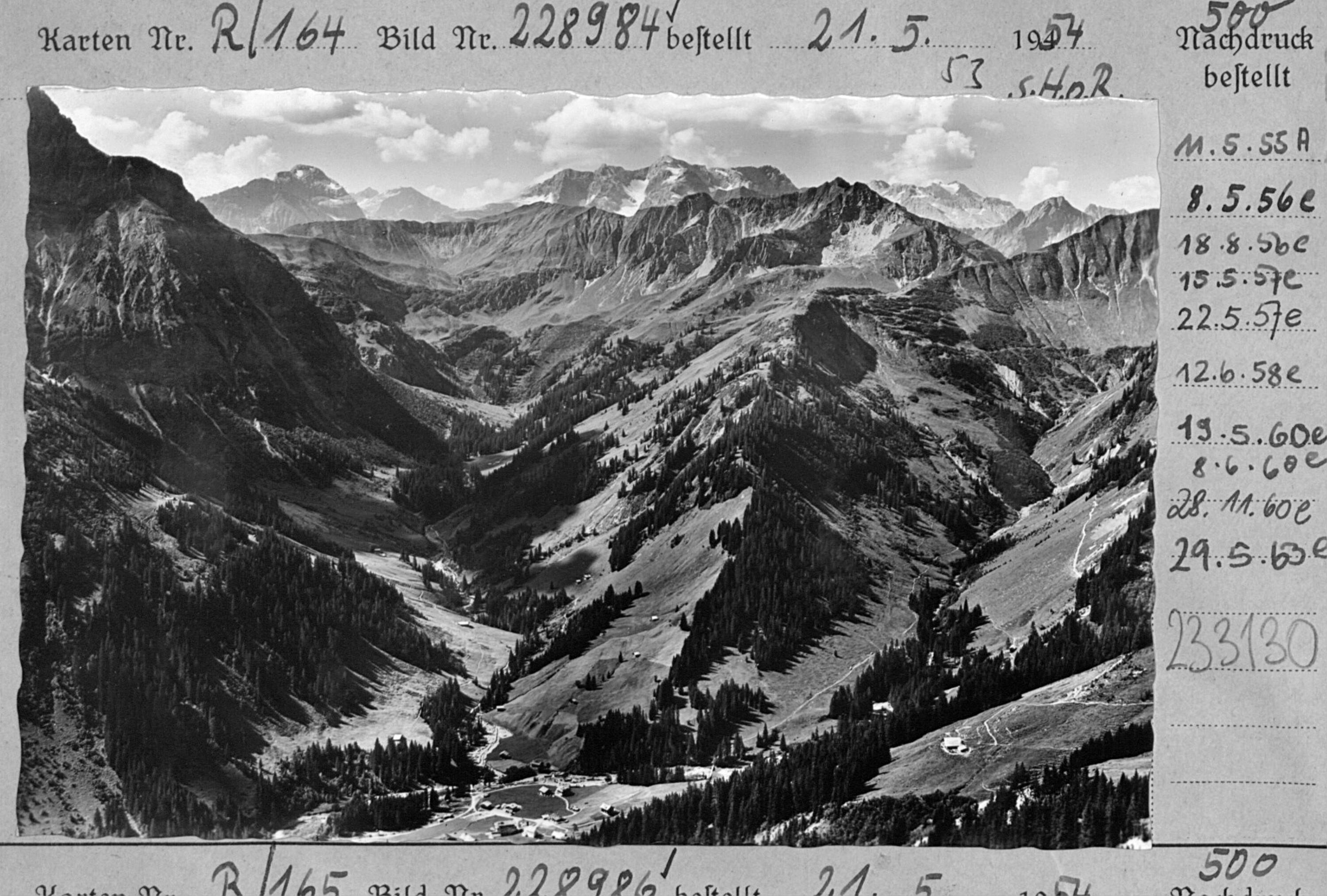 [Blick auf Baad im Kleinwalsertal mit Mohnenfluh, Braunarlspitze, Rote Wand und Rothorn]