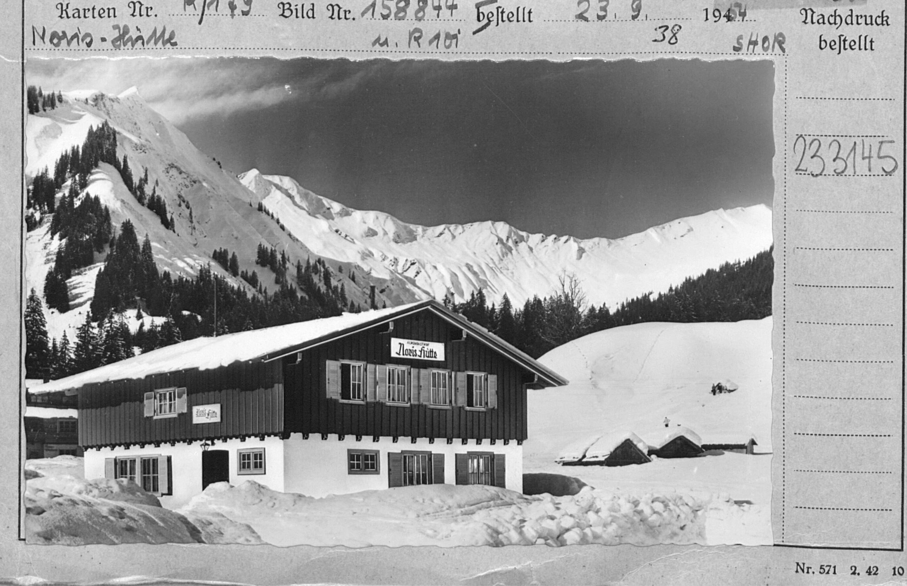 [Alpengasthof Noris-Hütte in Baad gegen Unspitze, Hochstarzel und Grünhorn / Kleinwalsertal]