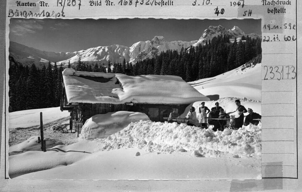 [Bärgunt-Hütte im Bärgunttal bei Baad gegen Höferspitze, Gamsfuß und Heiterberg / Kleinwalsertal]
