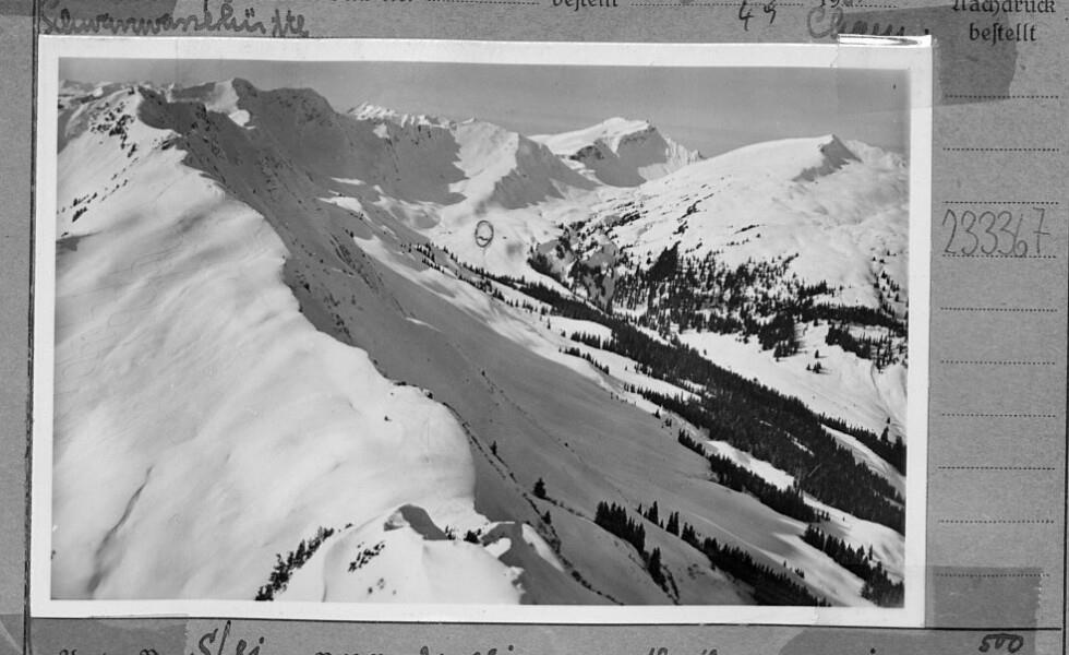 [Blick vom Walmedinger Horn in's Schwarzwassertal gegen Grünhorn, Steinmannl, Diedamskopf und Kanisfluh / Kleinwalsertal]