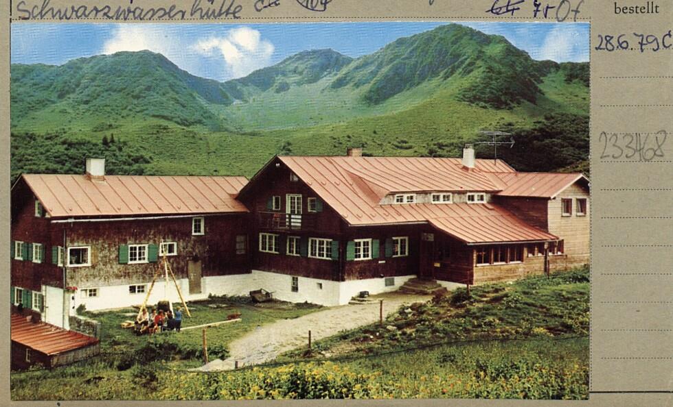 [<<Die>> Schwarzwasserhütte im Sommer mit Blick zum Grünhorn / Kleinwalsertal]