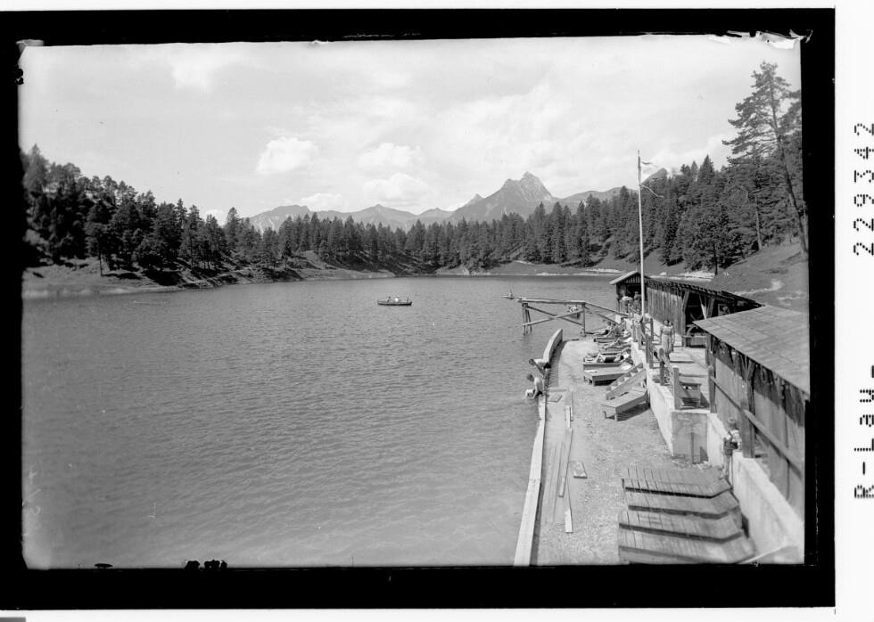 [Badeanstalt am Urisee bei Reutte im Ausserfern gegen Tannheimergruppe mit Gehrenspitze / Tirol]