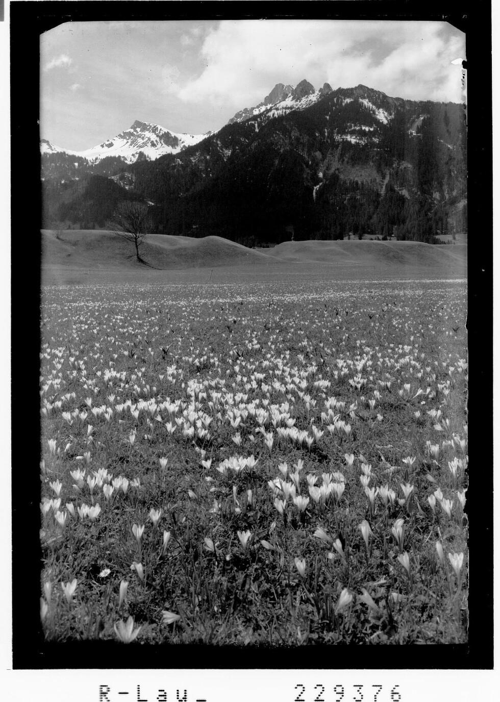 [Krokuswiese bei Reutte im Ausserfern mit Schneidspitze und Gehrenspitze / Tirol]