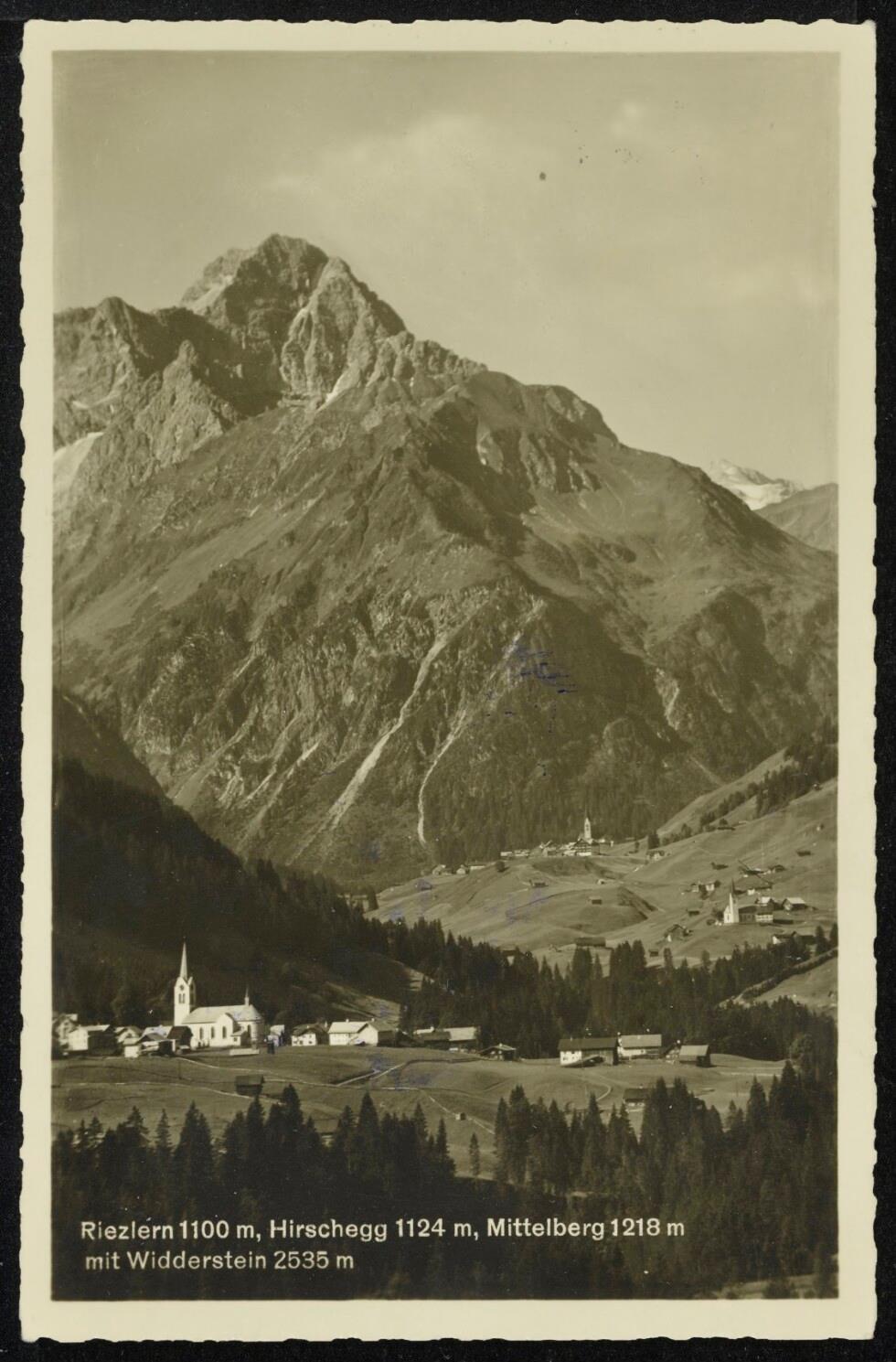 [Mittelberg Riezlern] : [Kleinwalsertal Riezlern 1100 m, Hirschegg 1124 m und Mittelberg 1218 m mit Widderstein 2535 m ...]