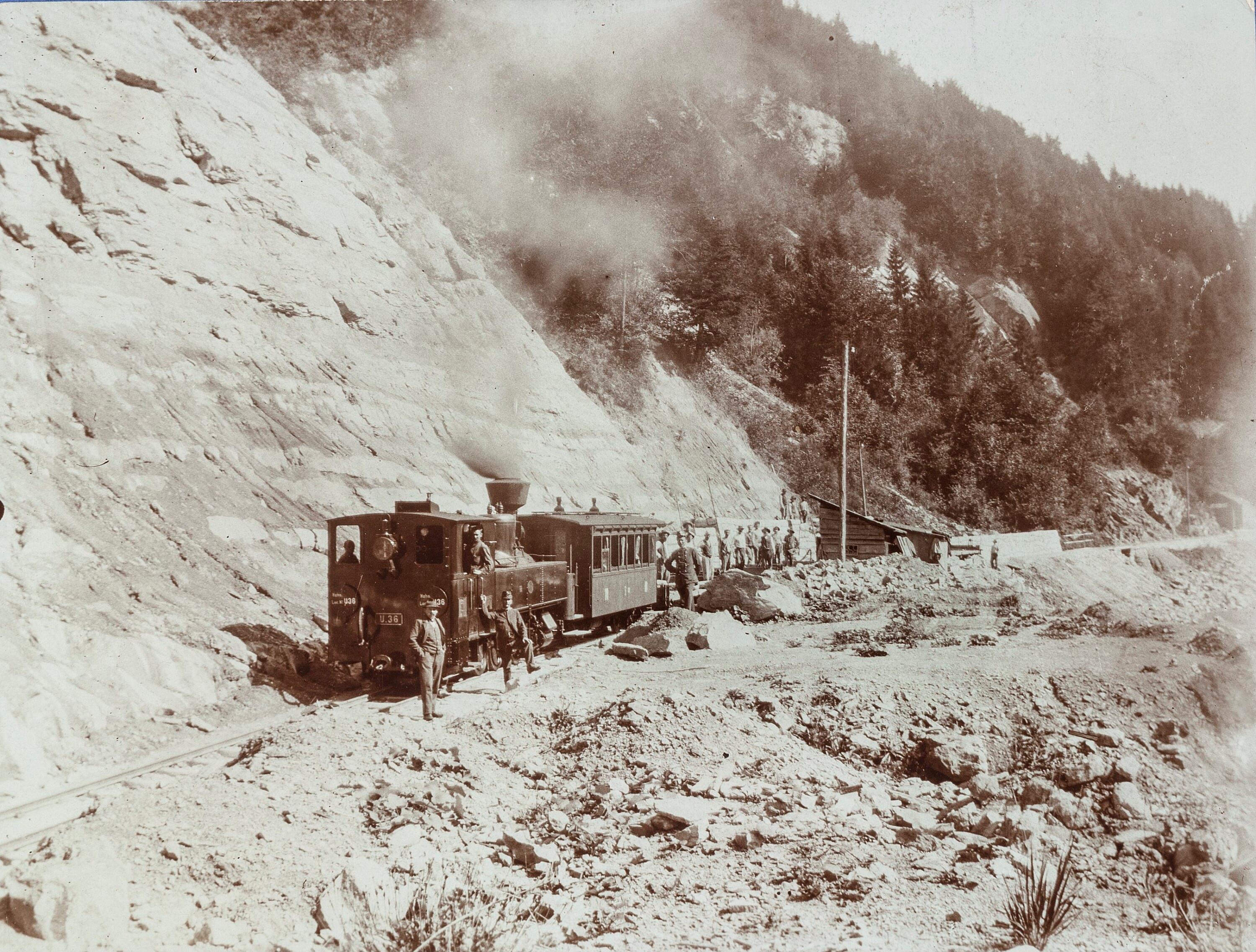 • Materialzug der Bregenzerwaldbahn bei Langen-Buch; im Zug: Zugführer Seeber