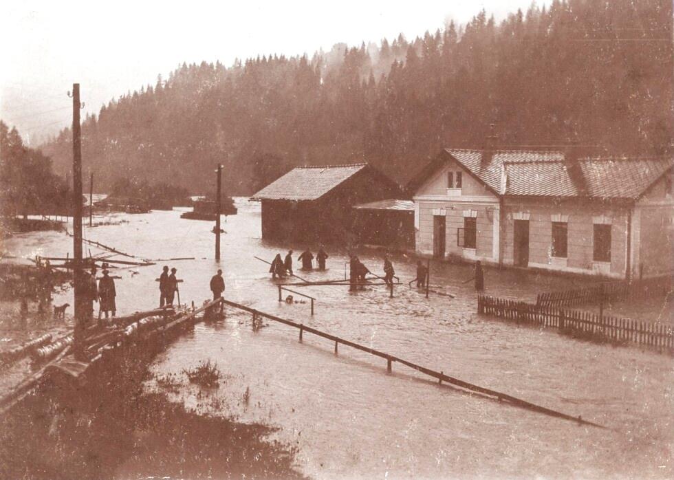 <<Der>> Bahnhof Doren-Sulzberg unter Hochwasser