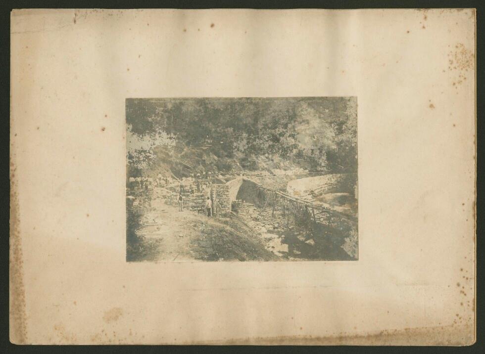 Das im Bau befindliche Viadukt der Bregenzerwaldbahn bei Egg mit Brücke über die Bregenzer Ach