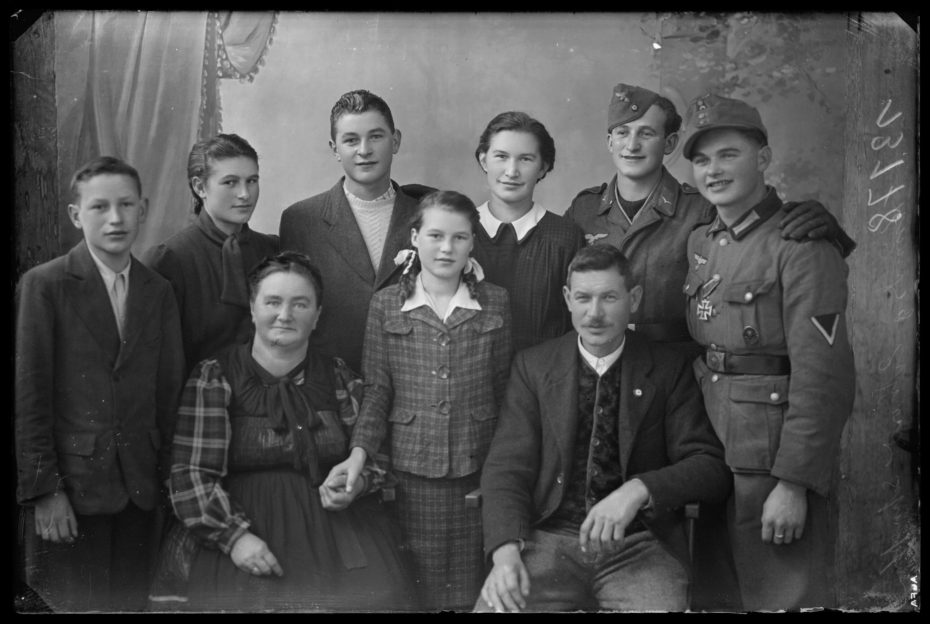 • sitzend: Mutter Margaretha Kündig, geb. Bickel (geb. 1892 Schoppernau, gest. 1972 Hirschau [Vorarlberger Nachrichten 24.03.1972]); Vater Eduard Kündig (gest. 1949 [Vorarlberger Nachrichten 24.03.1972]); Mitte stehend: Herta; stehend 2.v.r.; Eduard; alle anderen Kinder gestorben (Fridolin Mätzler)