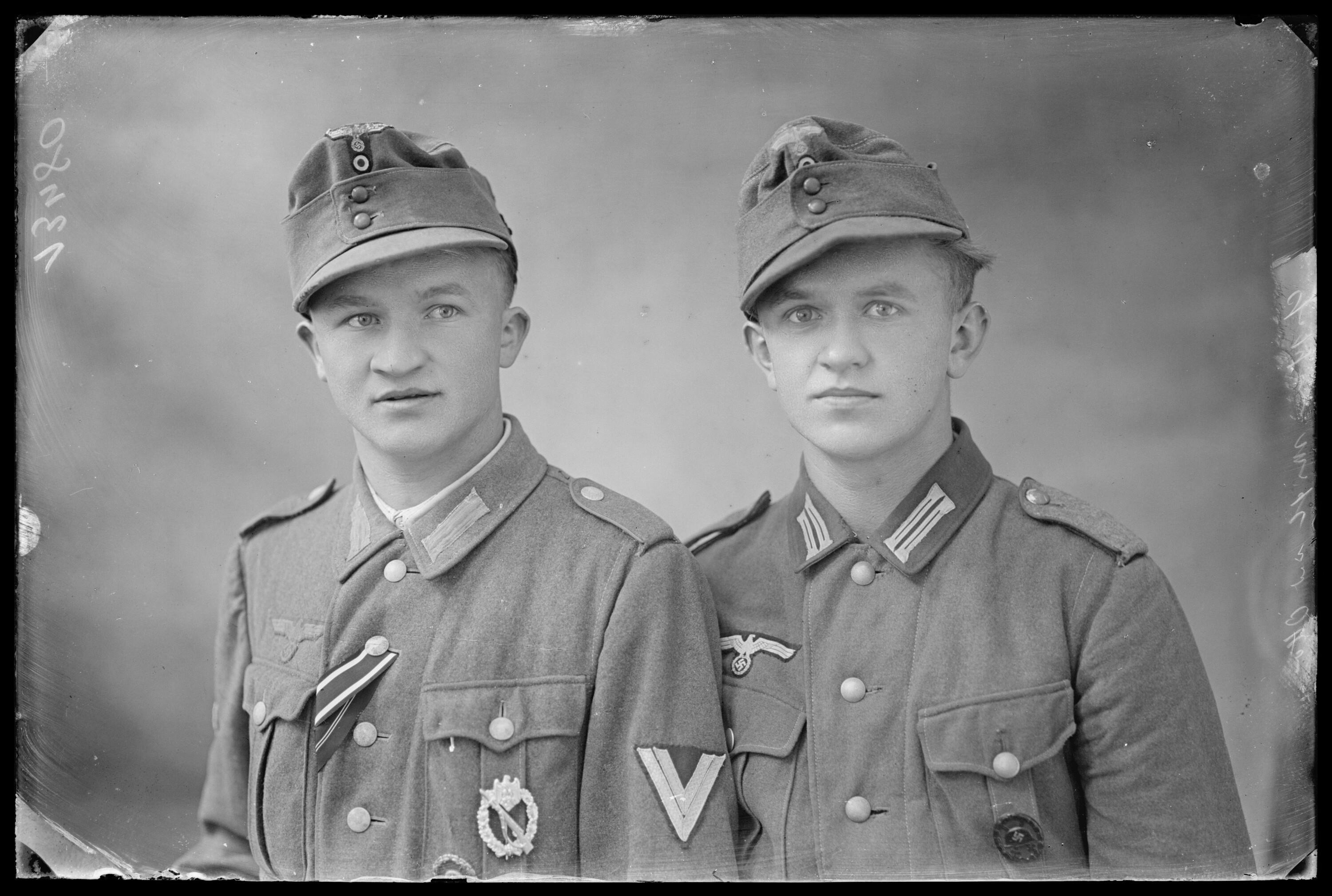 • v.l.n.r.: Michael Fischer (geb. 13.09.1920 Bezau, gef. 10.10.1944 [Sterbebildsammlung Gottfried Winkel]); Otto Fischer (geb. 23.11.1923, gef. 22.05.1944 [Sterbebildsammlung Gottfried Winkel])