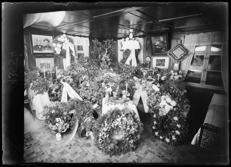 • Aufbahrung für Frieda Dünser (geb. 24.04.1902 Bezau, gest. 20.07.1944 bei Bombenangriff in Friedrichshafen [Sterbebildsammlung Gottfried Winkel])