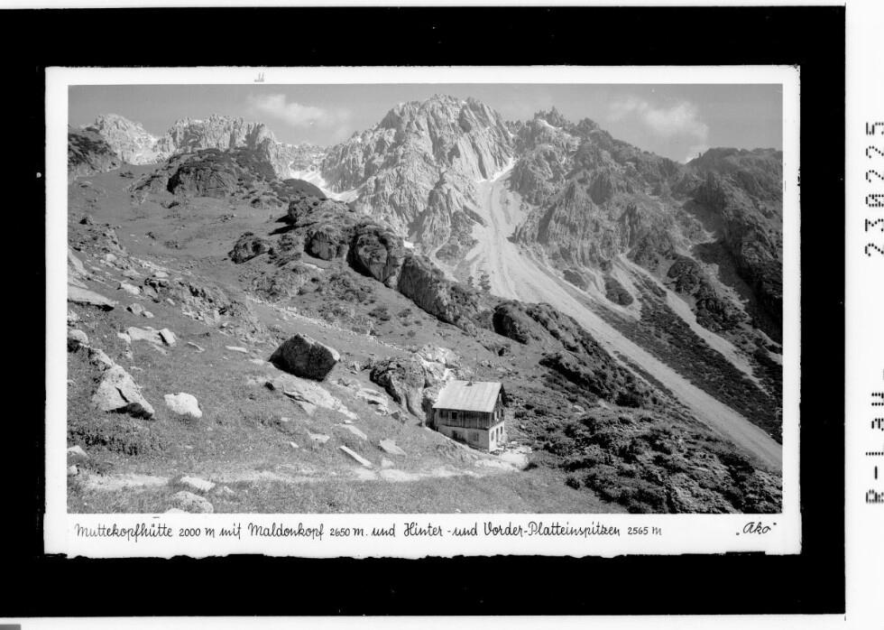 Muttekopfhütte 2000 m mit Maldonkopf 2650 m und Hinter - und Vorder - Platteinspitze
