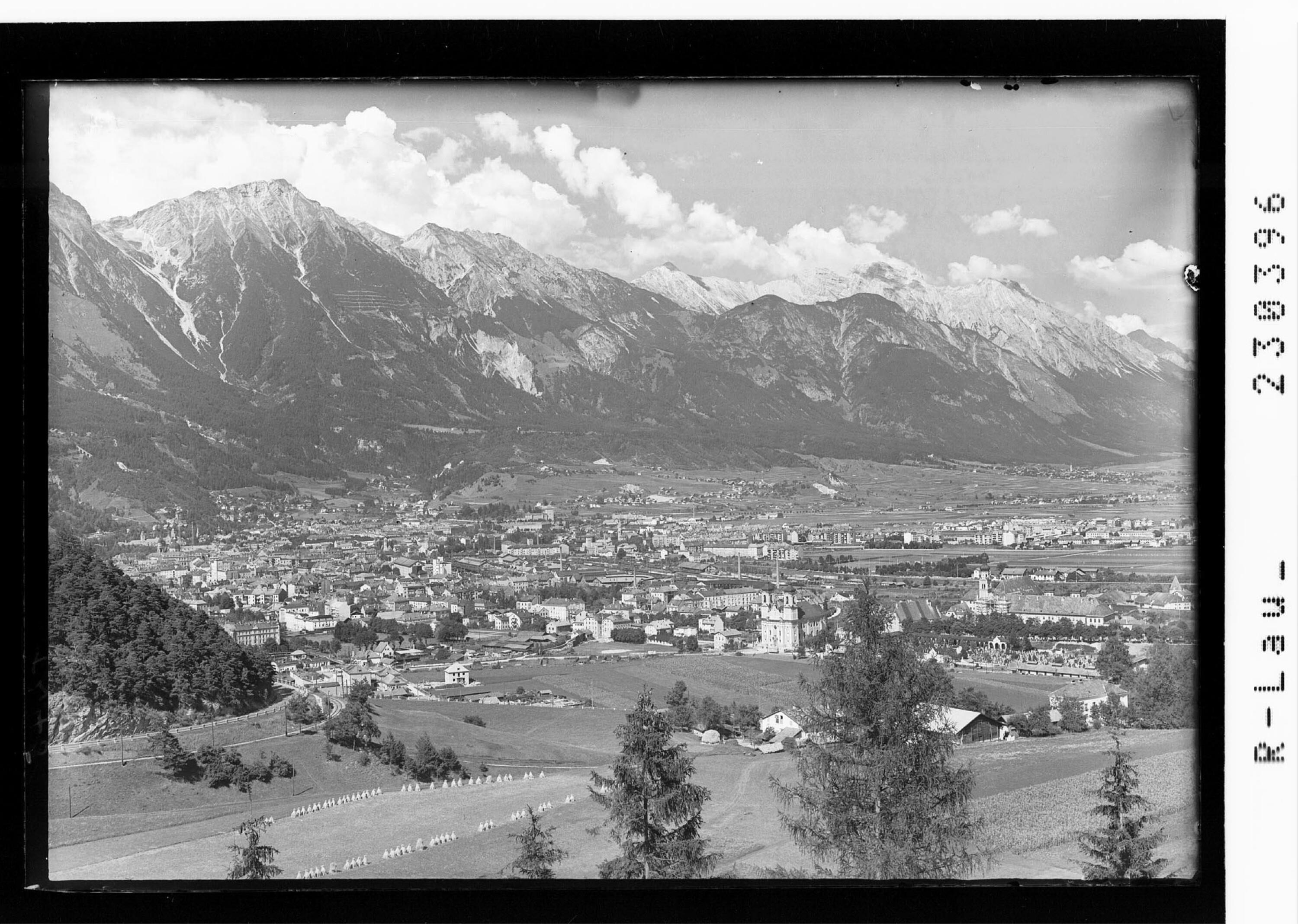 [Innsbruck gegen Nordkette mit Rumer Spitze und Halltalkette mit Bettelwurf / Tirol]