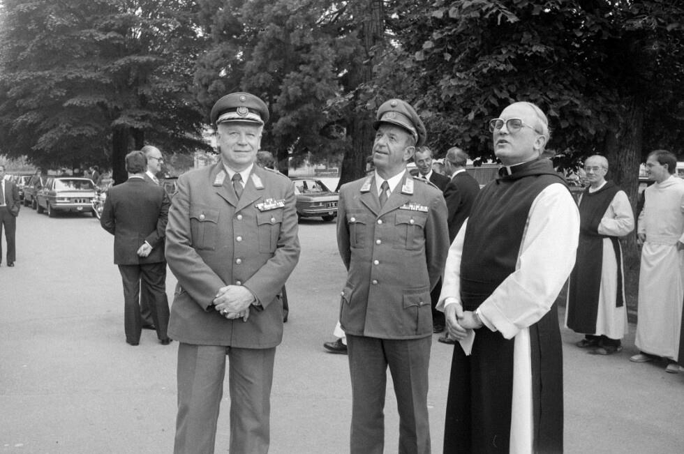 • o:350895: v.l.n.r.: Kolumban Spahr, Bundespräsident Rudolf Kirchschläger, Kassian Lauterer