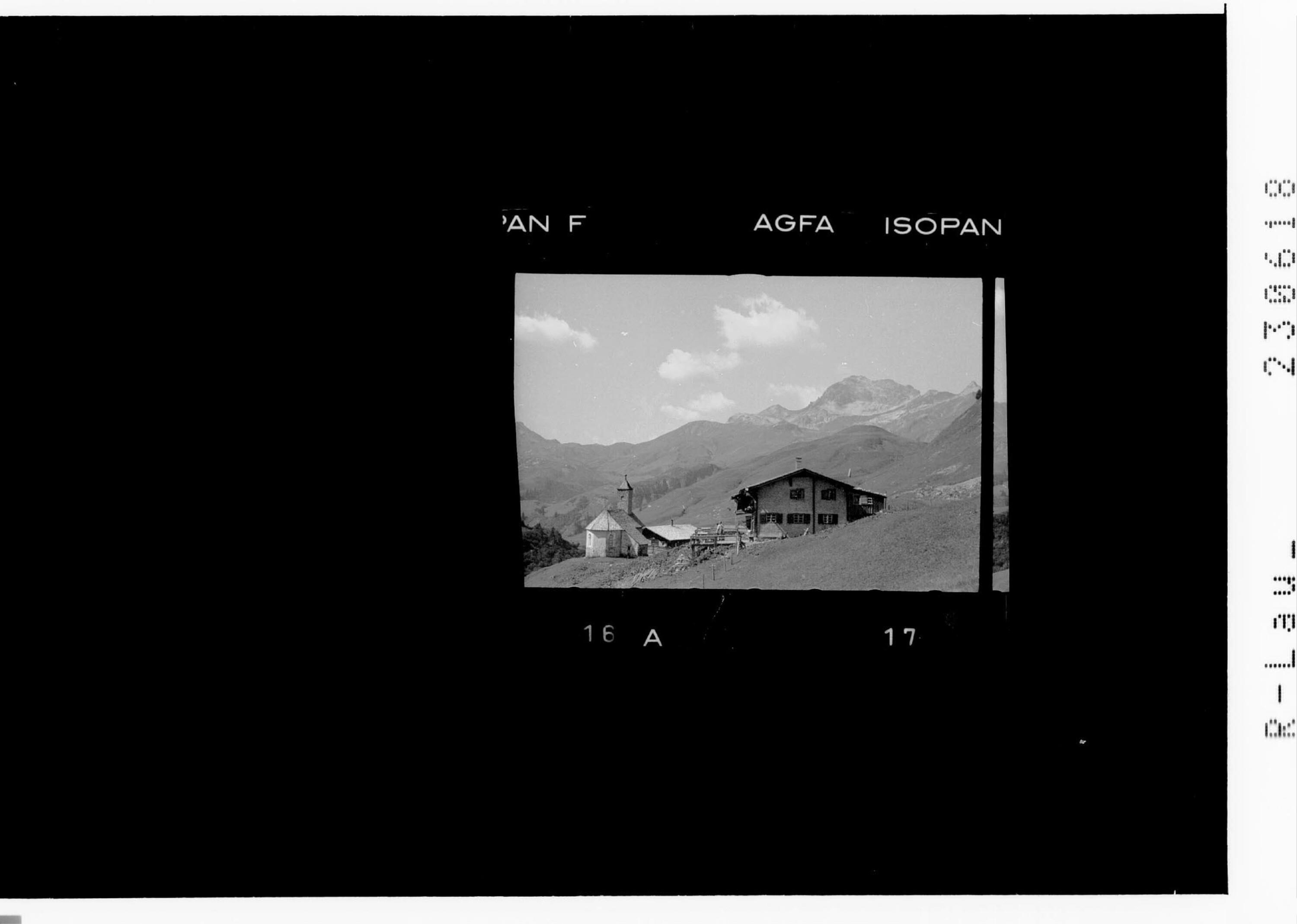 [Bürstegg ob Lech am Arlberg gegen Spuller Schafberg und Kriegerhorn]